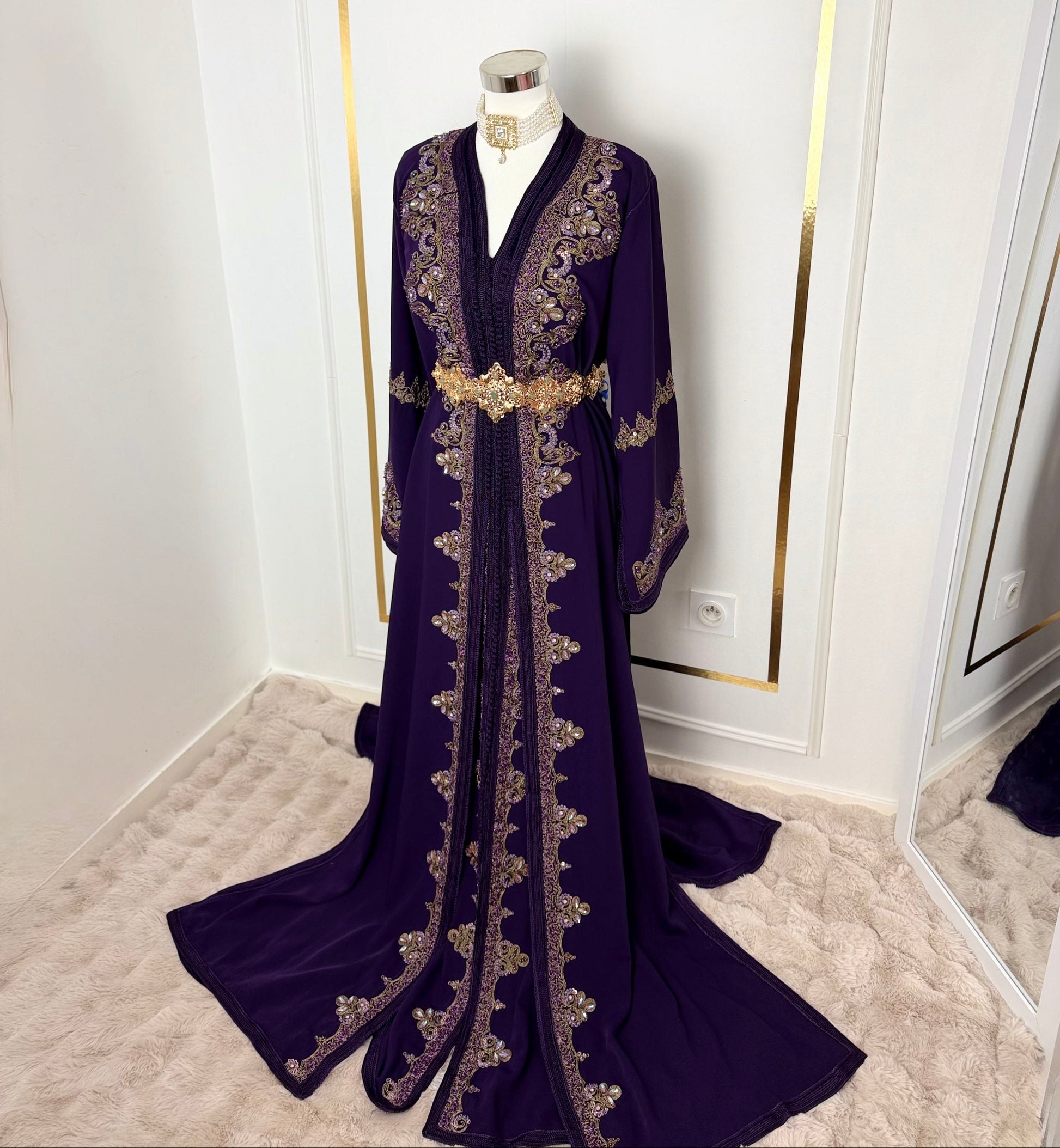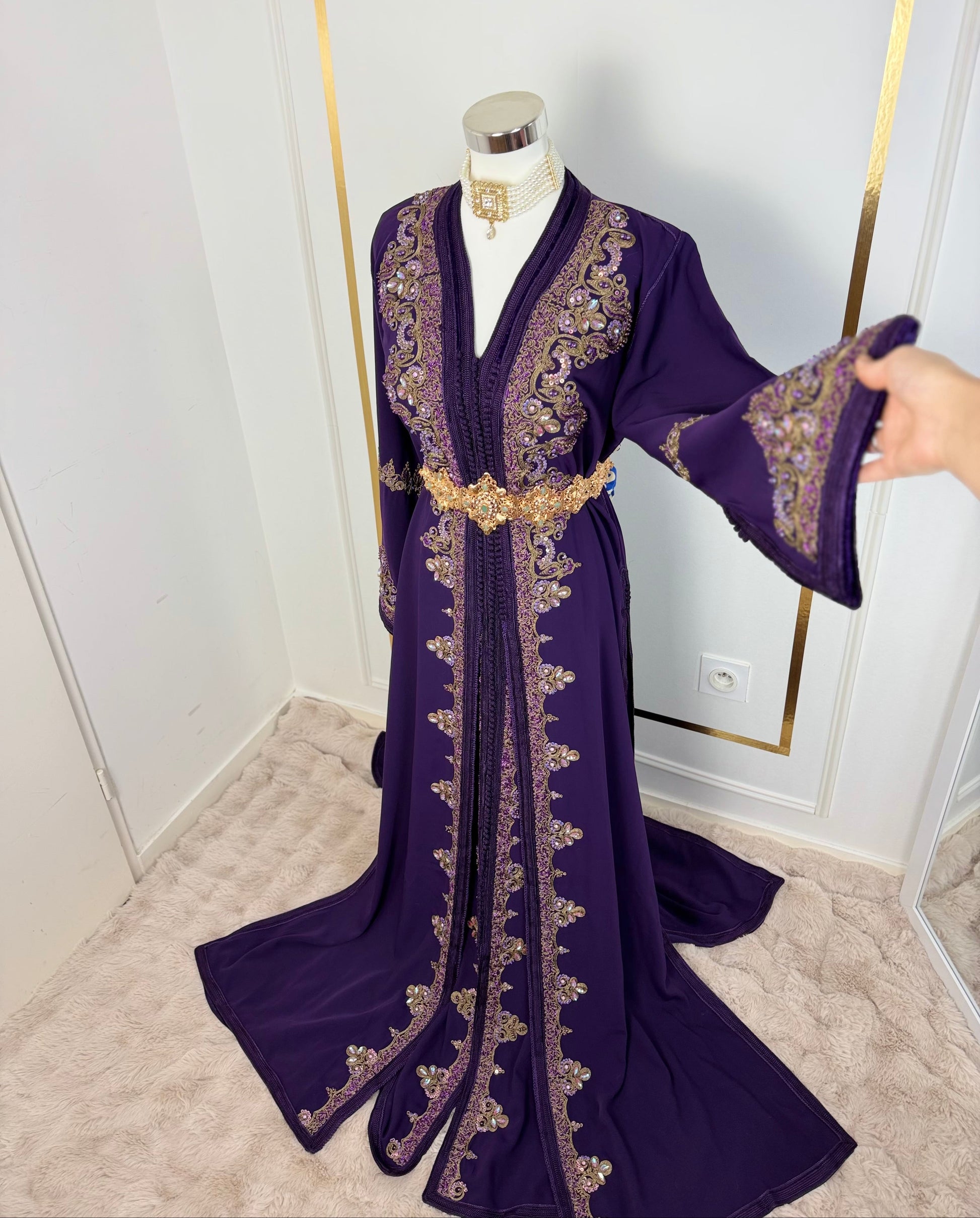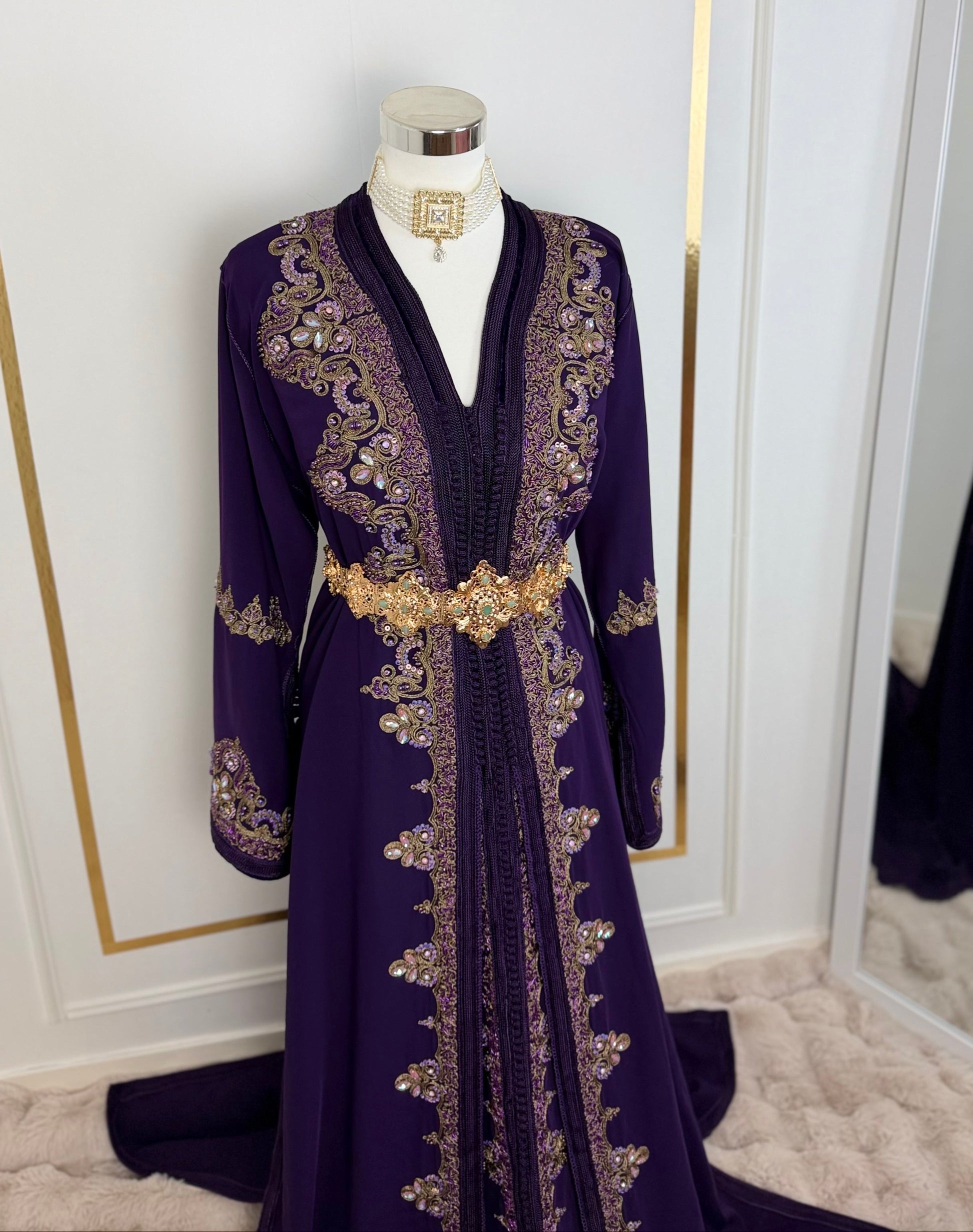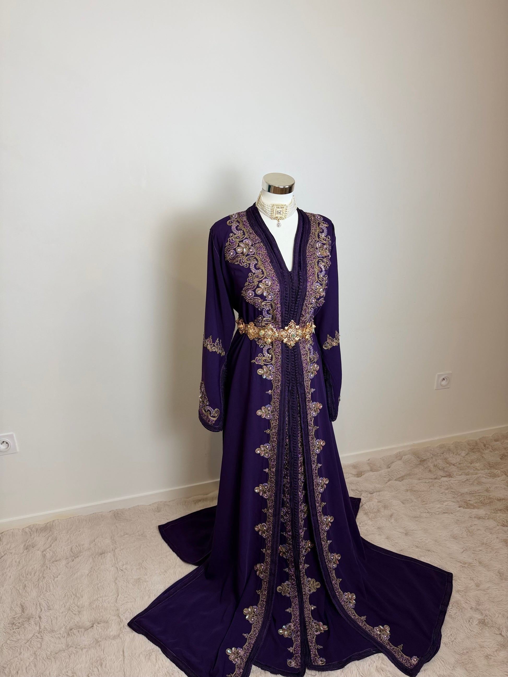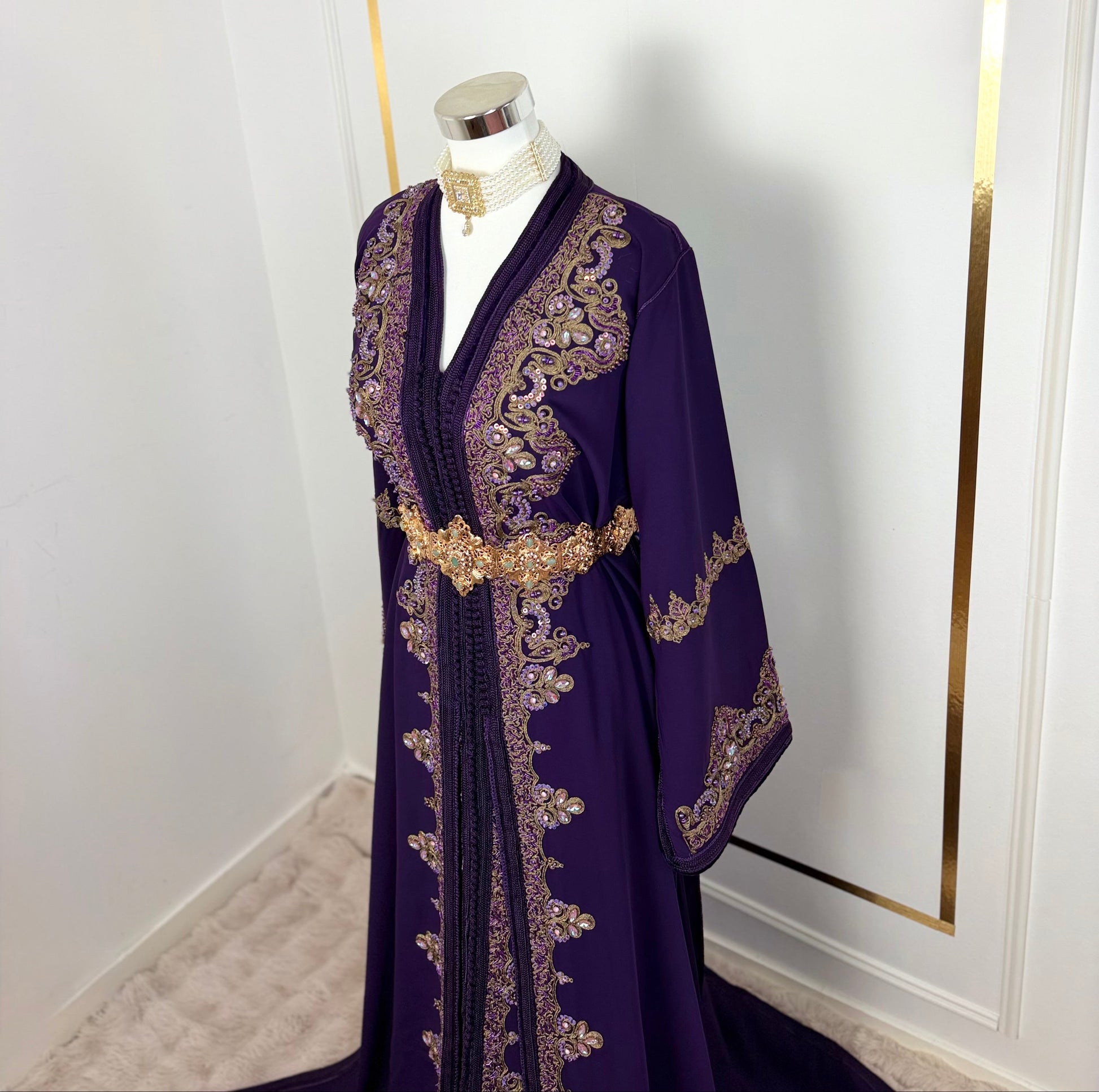 this caftan combines the charm of Moroccan craftsmanship with a contemporary touch,