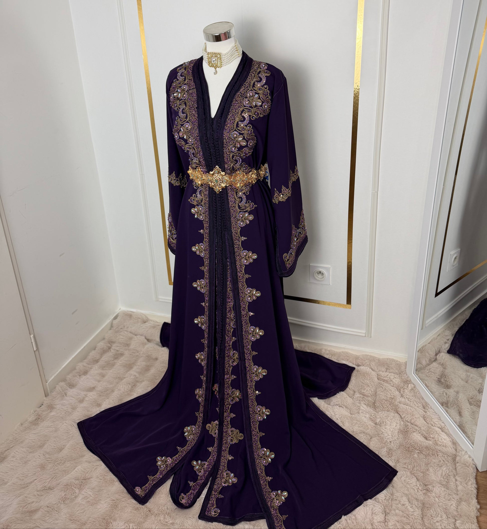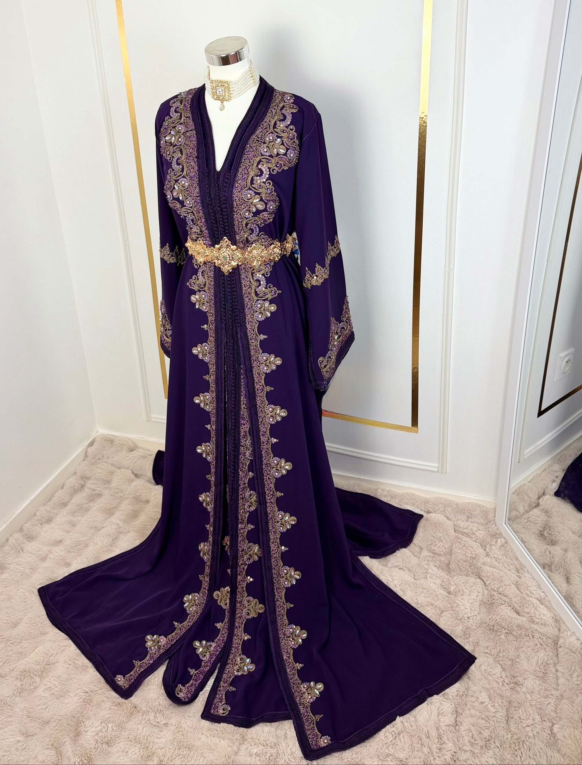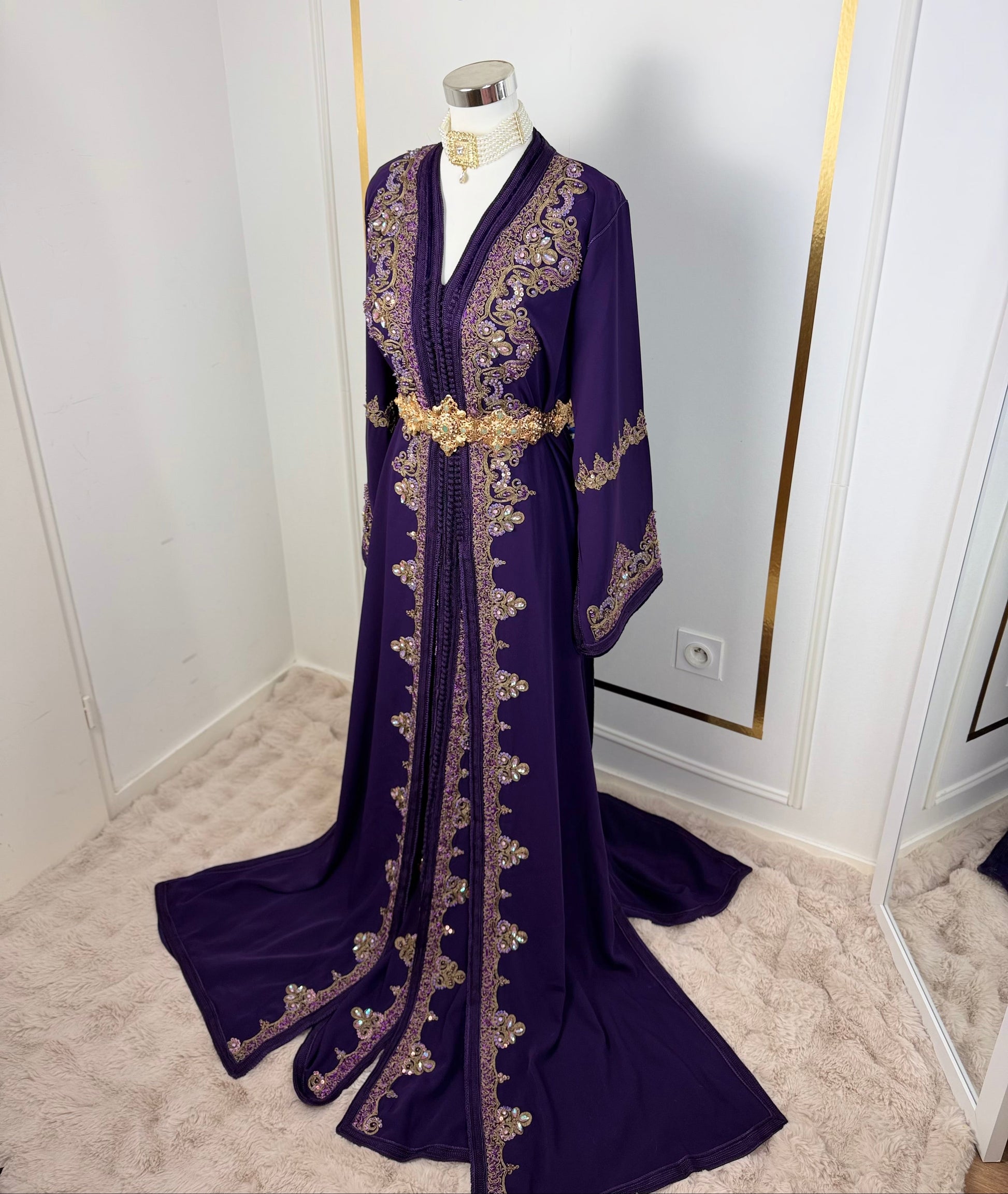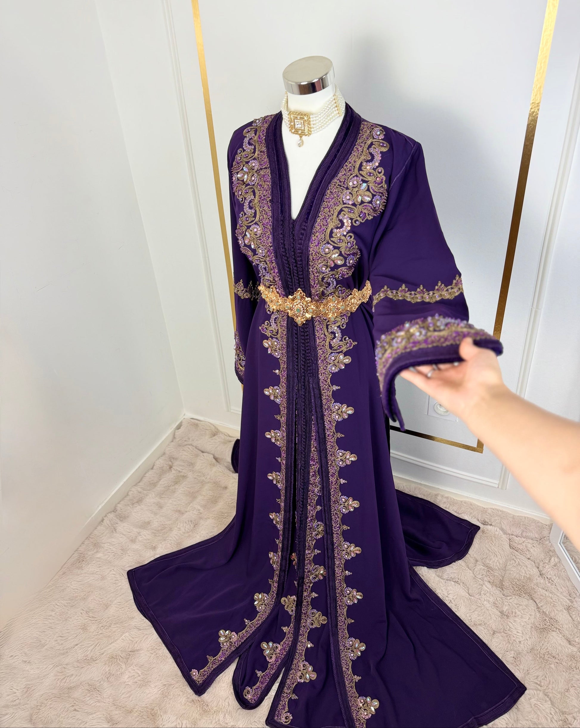 this caftan combines the charm of Moroccan craftsmanship with a contemporary touch,