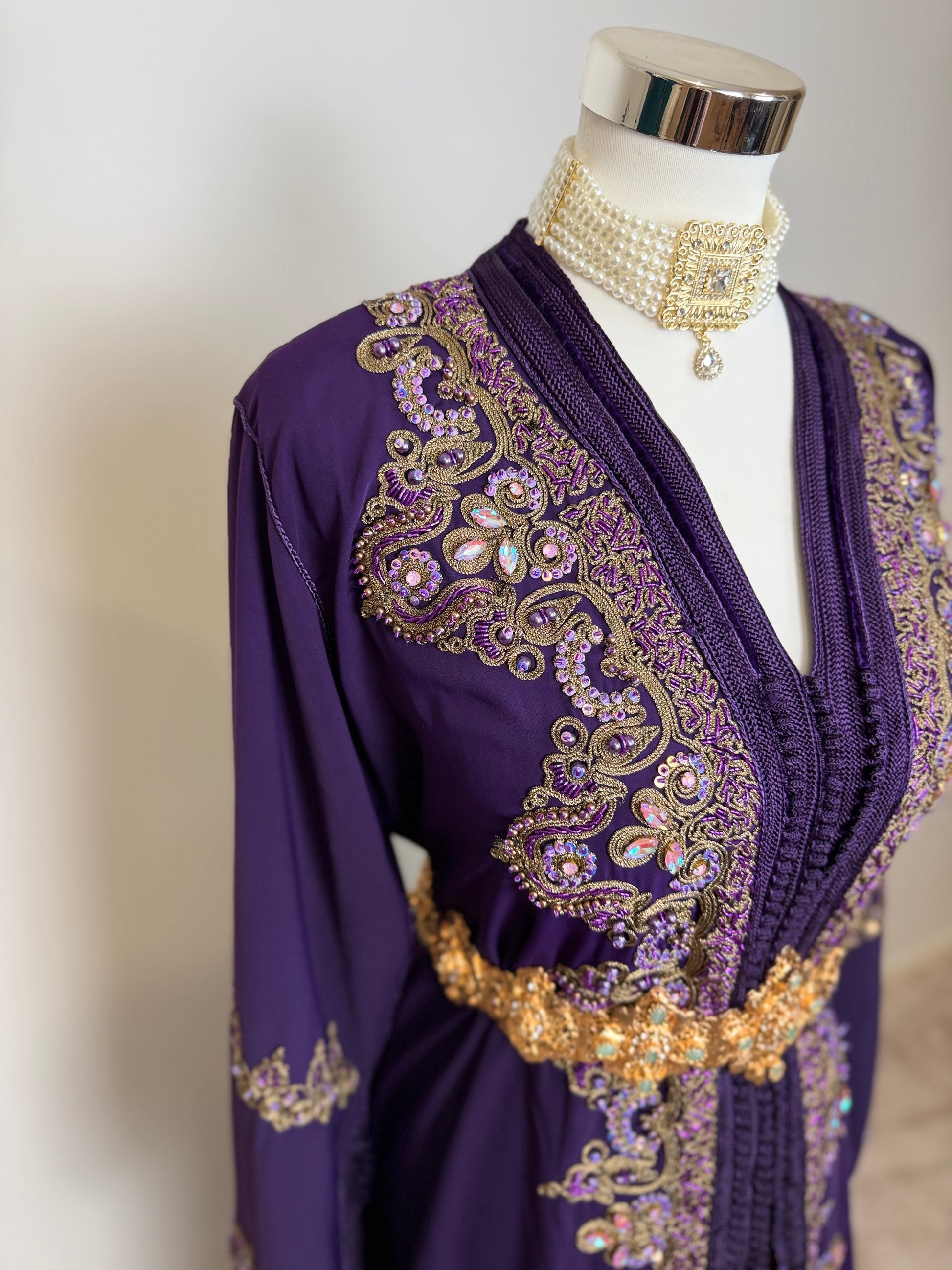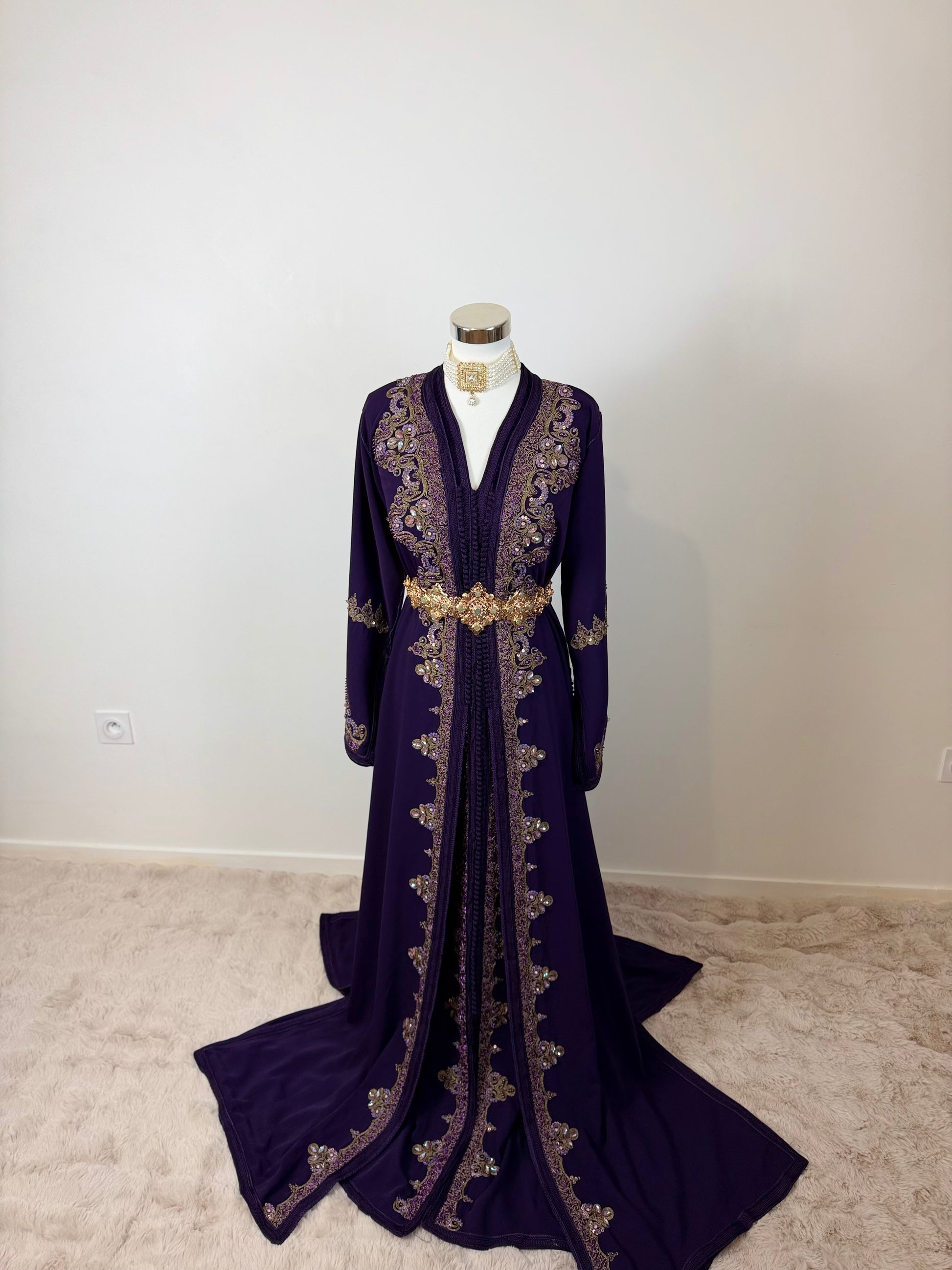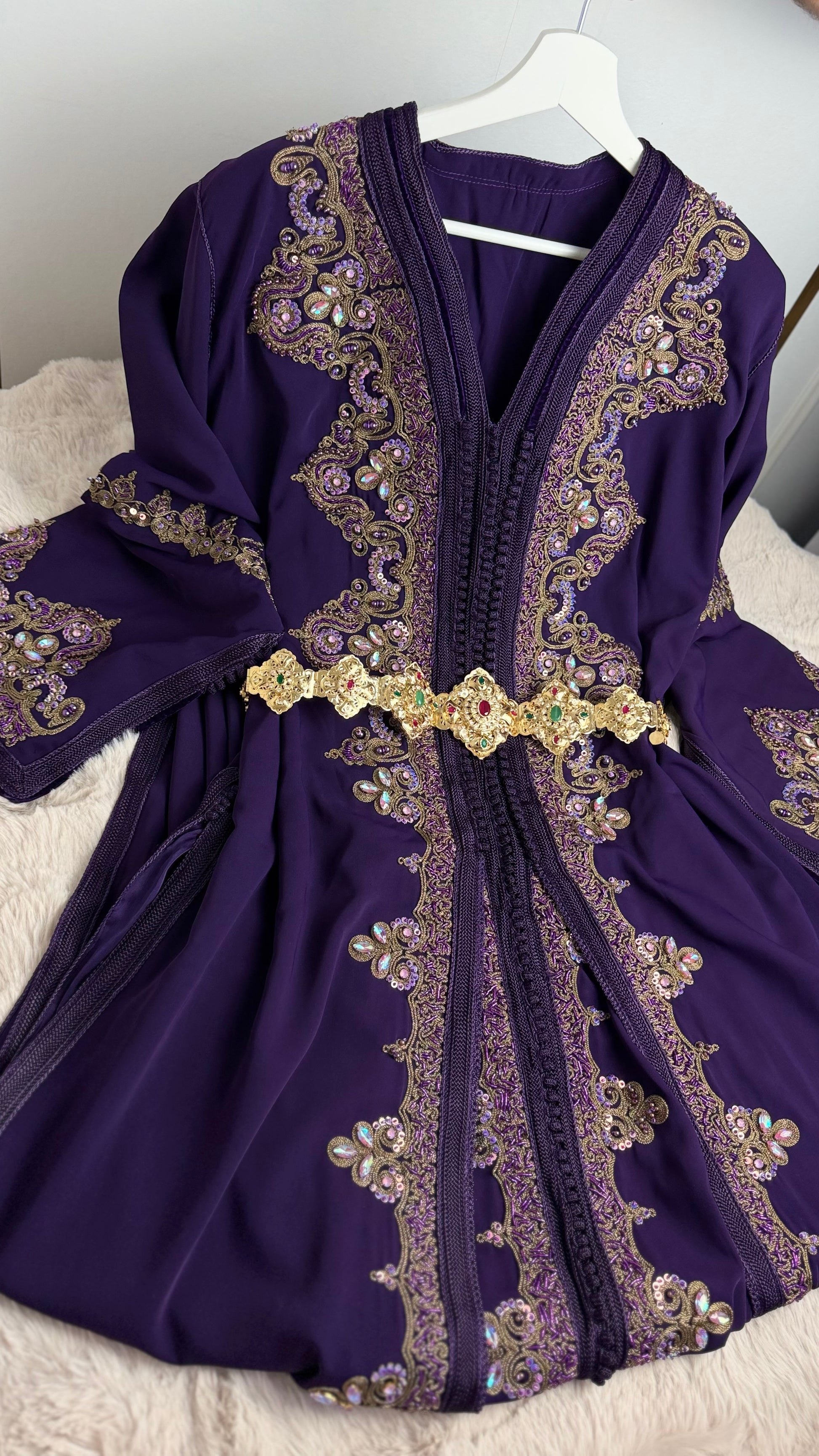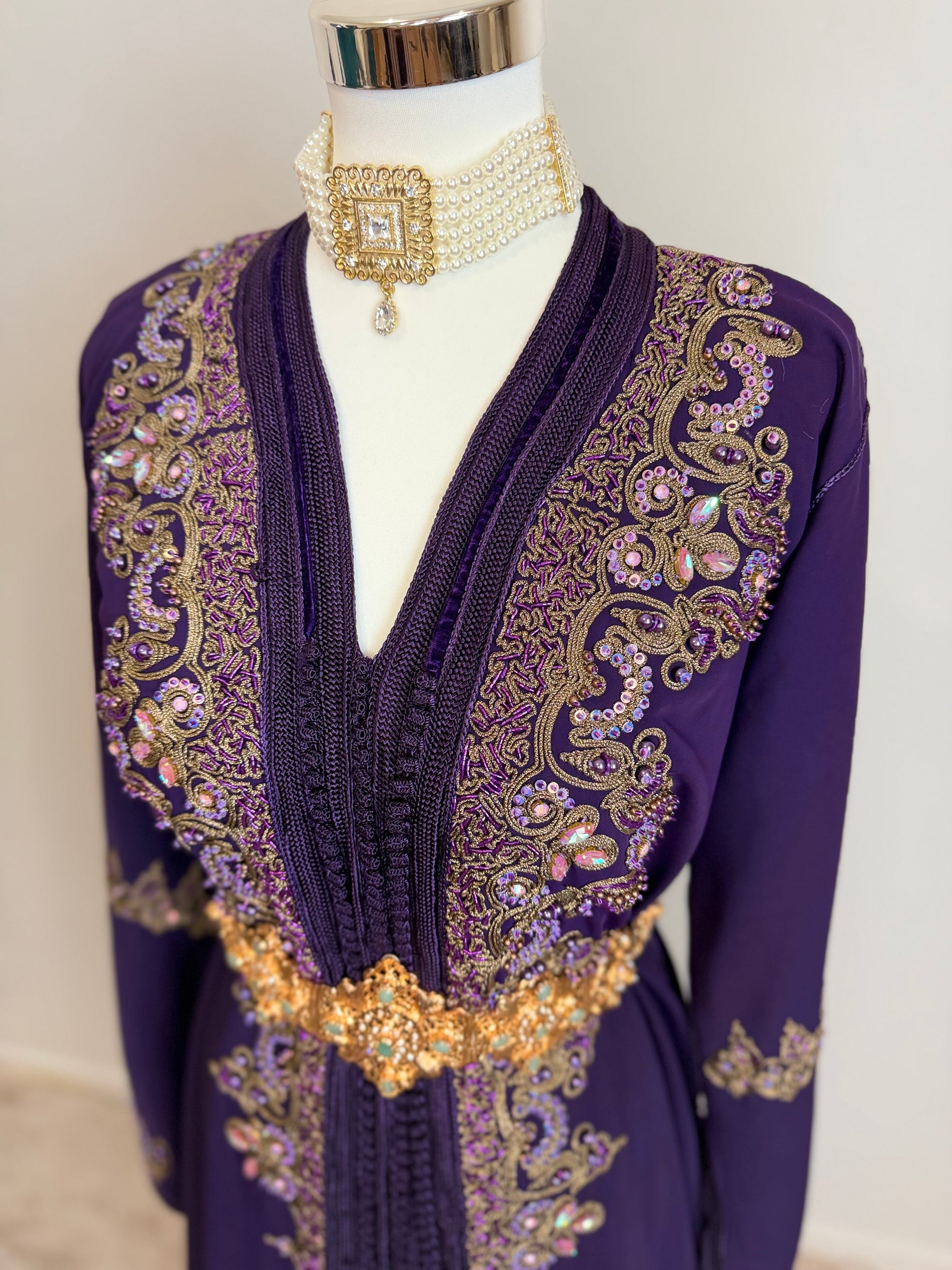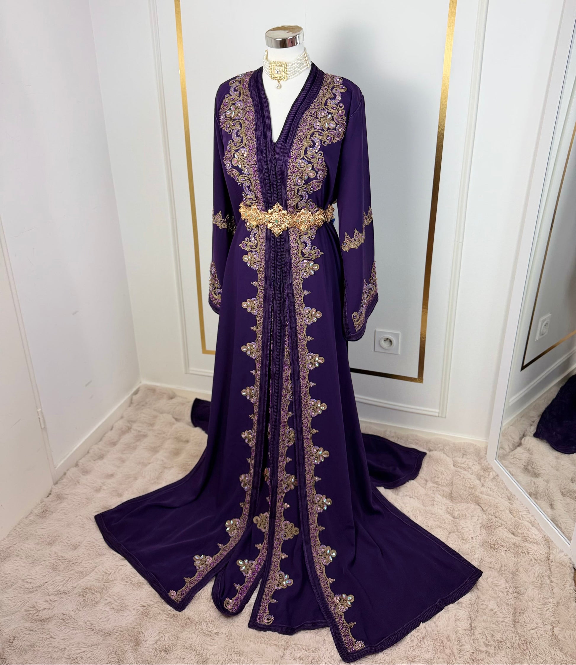 this caftan combines the charm of Moroccan craftsmanship with a contemporary touch,