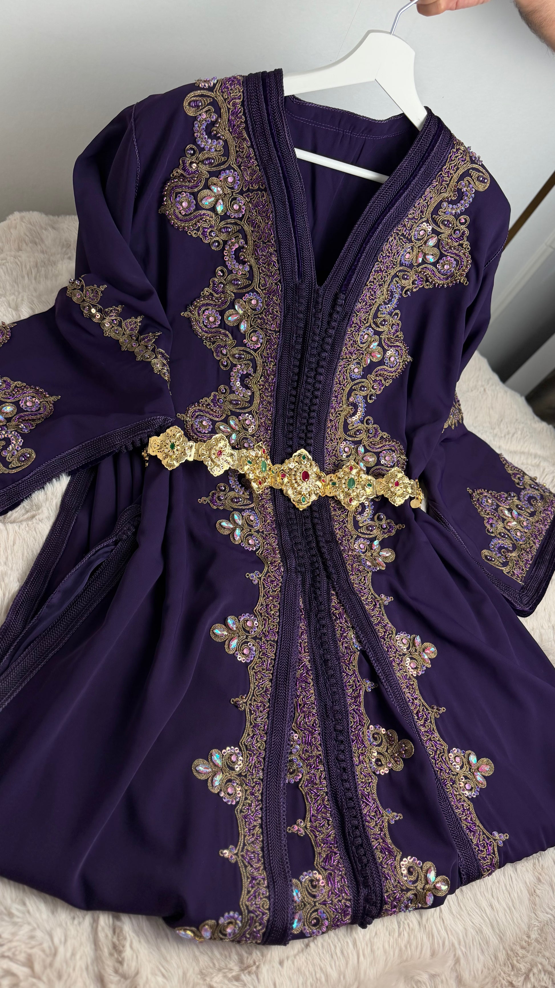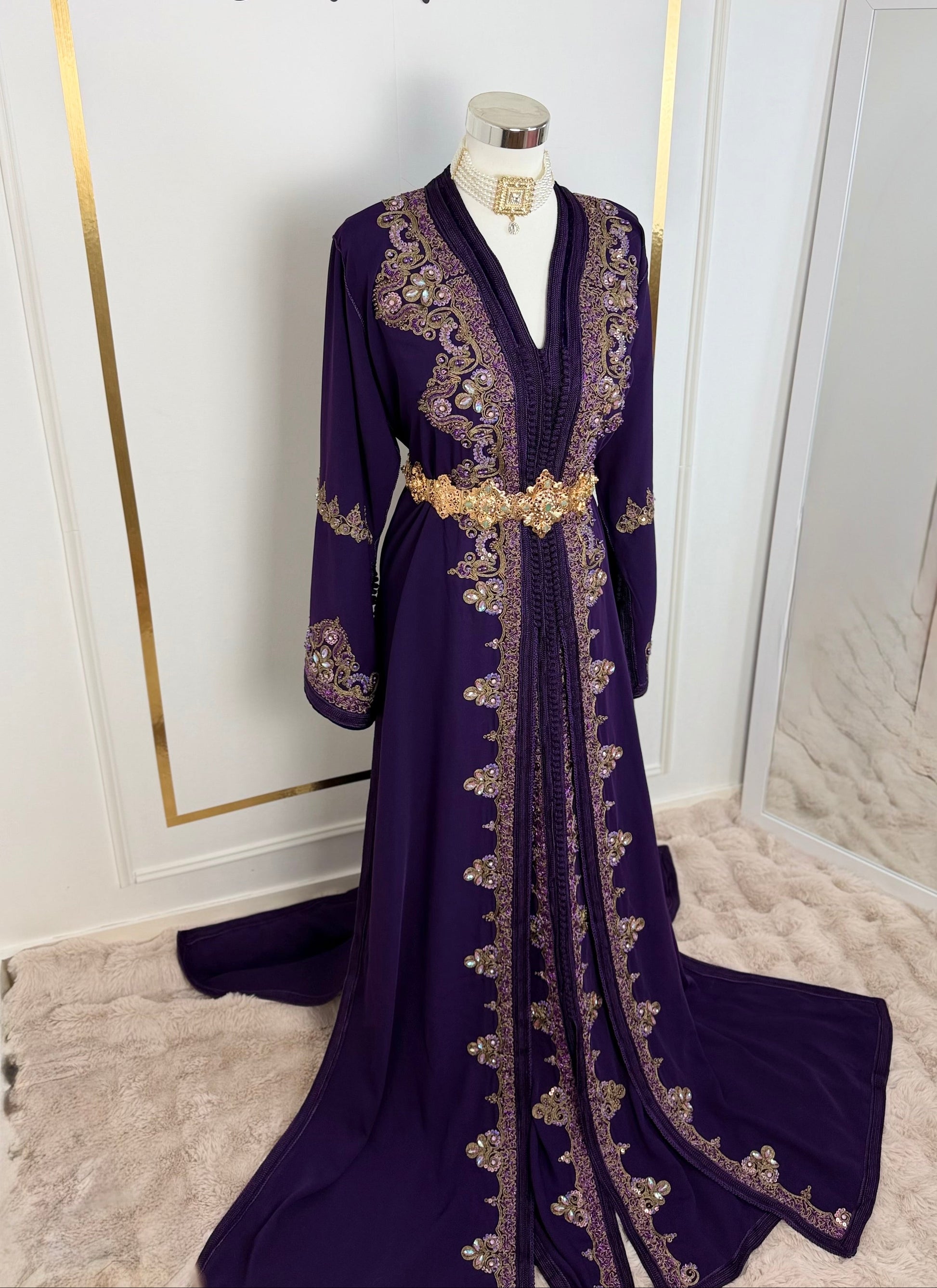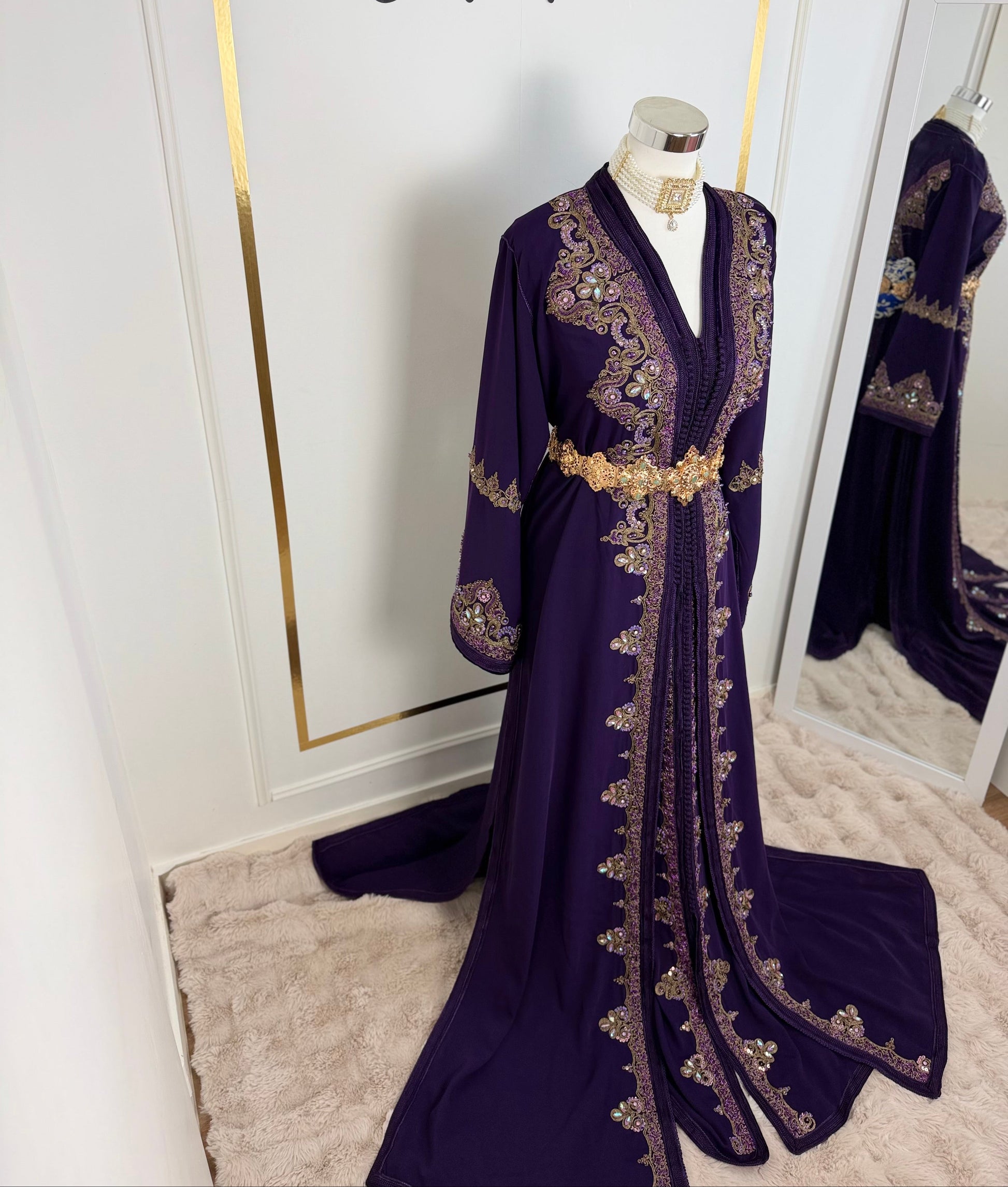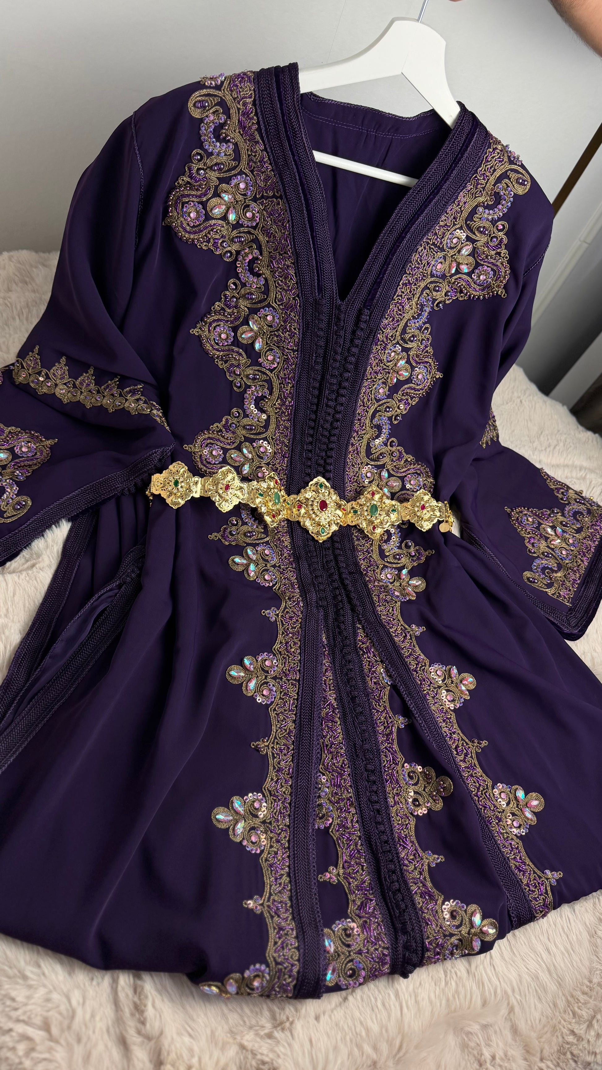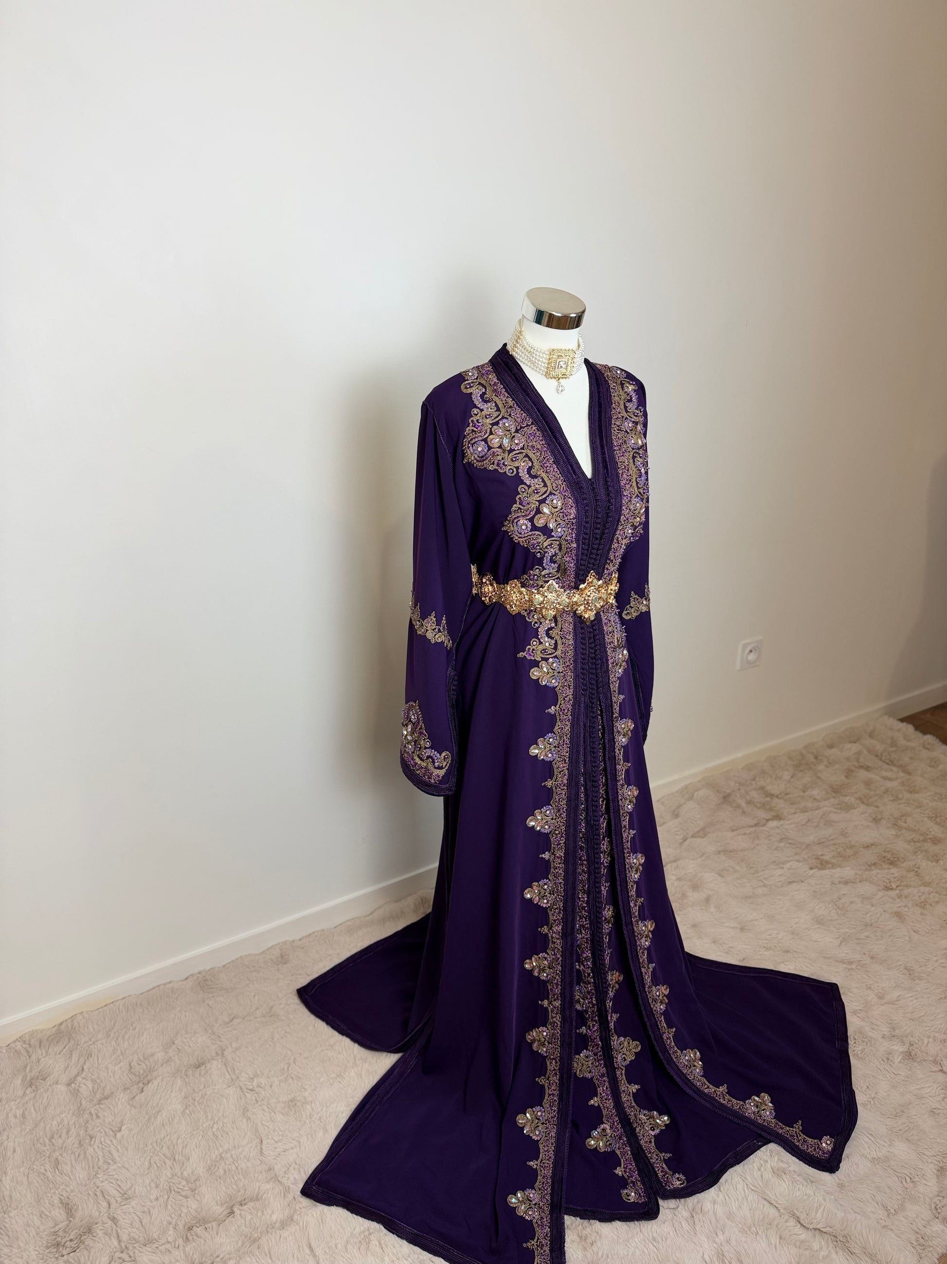 this caftan combines the charm of Moroccan craftsmanship with a contemporary touch,