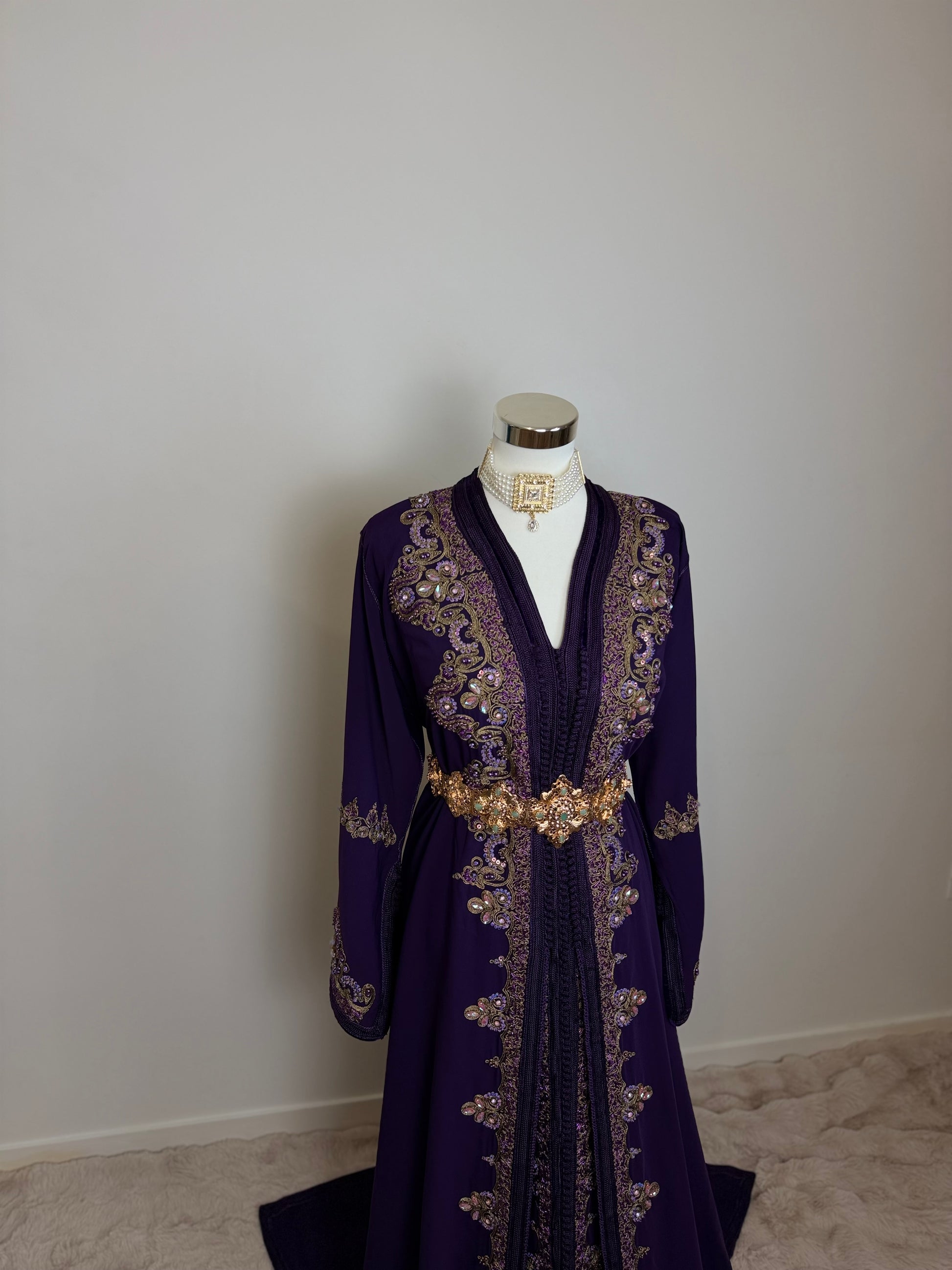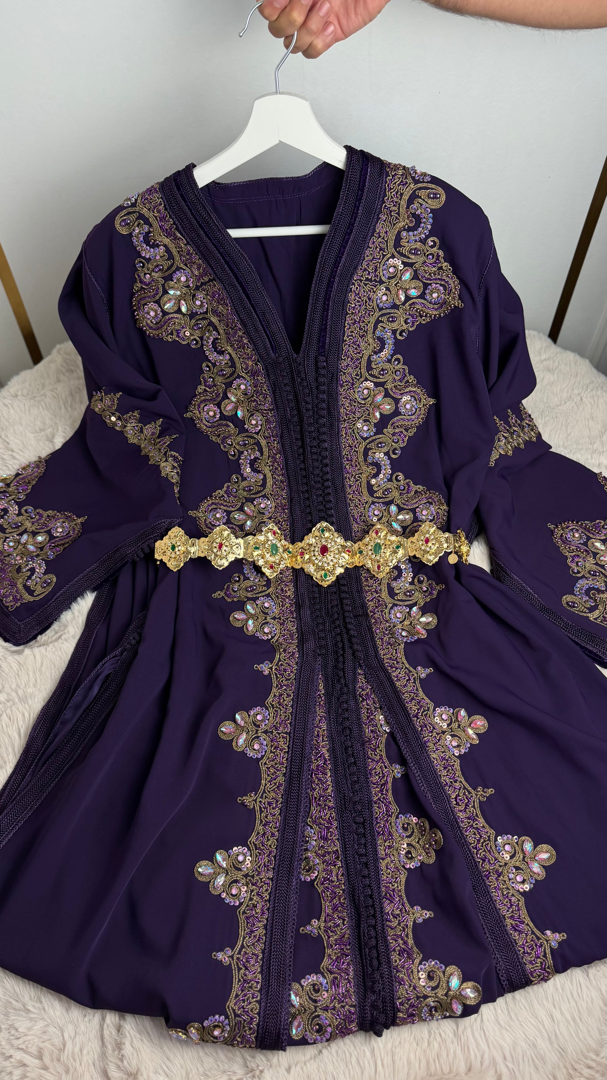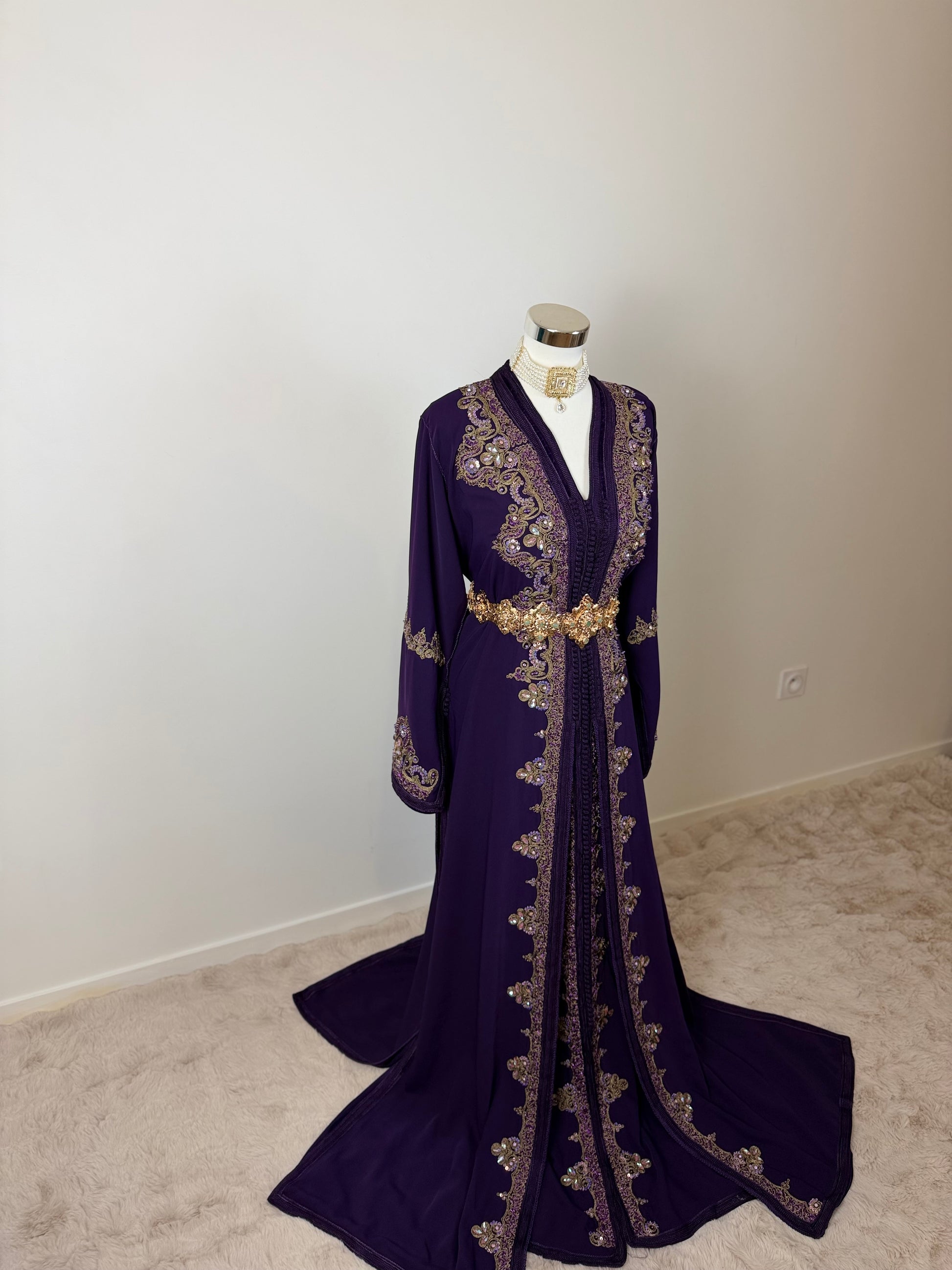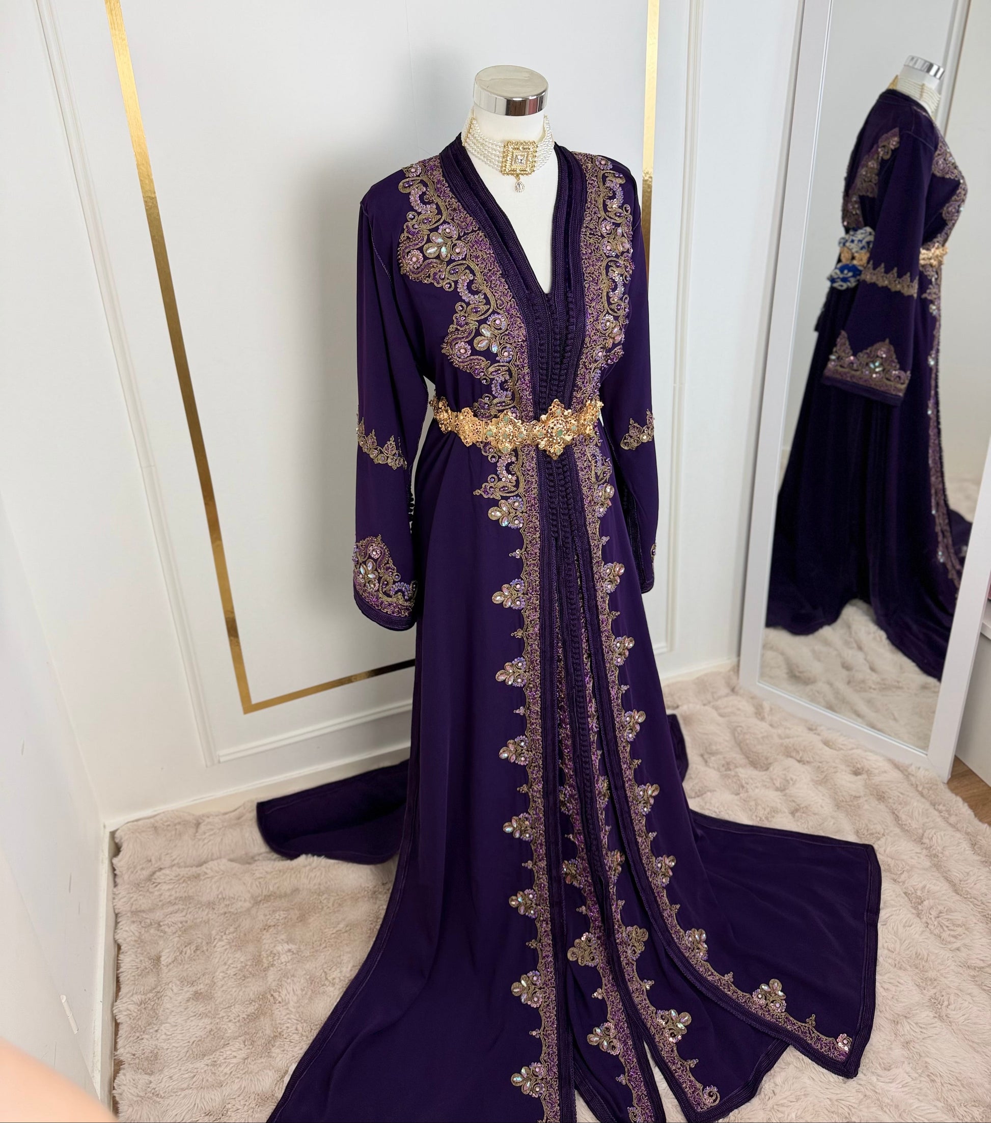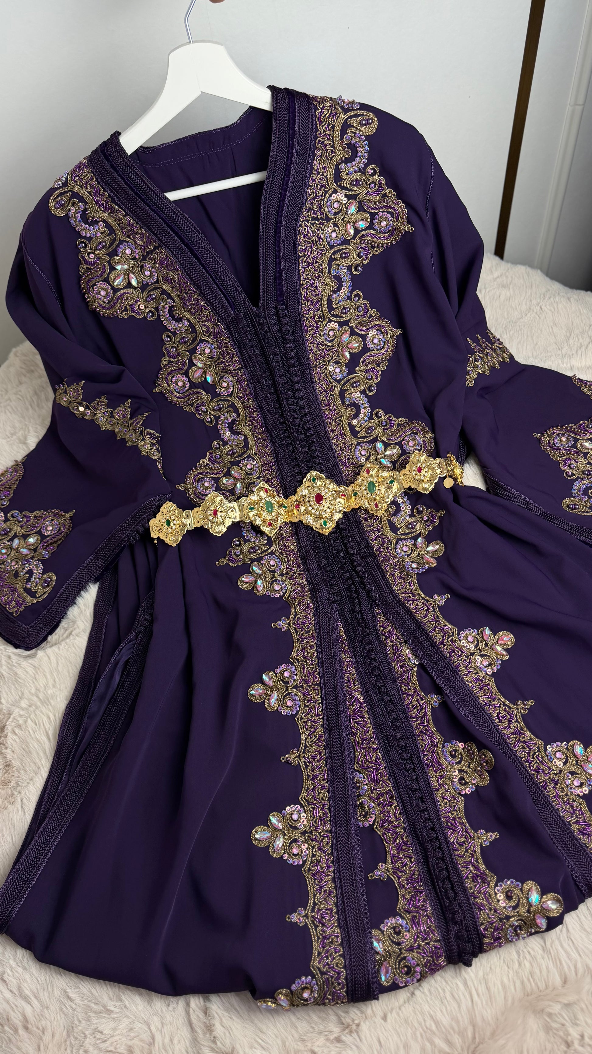 this caftan combines the charm of Moroccan craftsmanship with a contemporary touch,