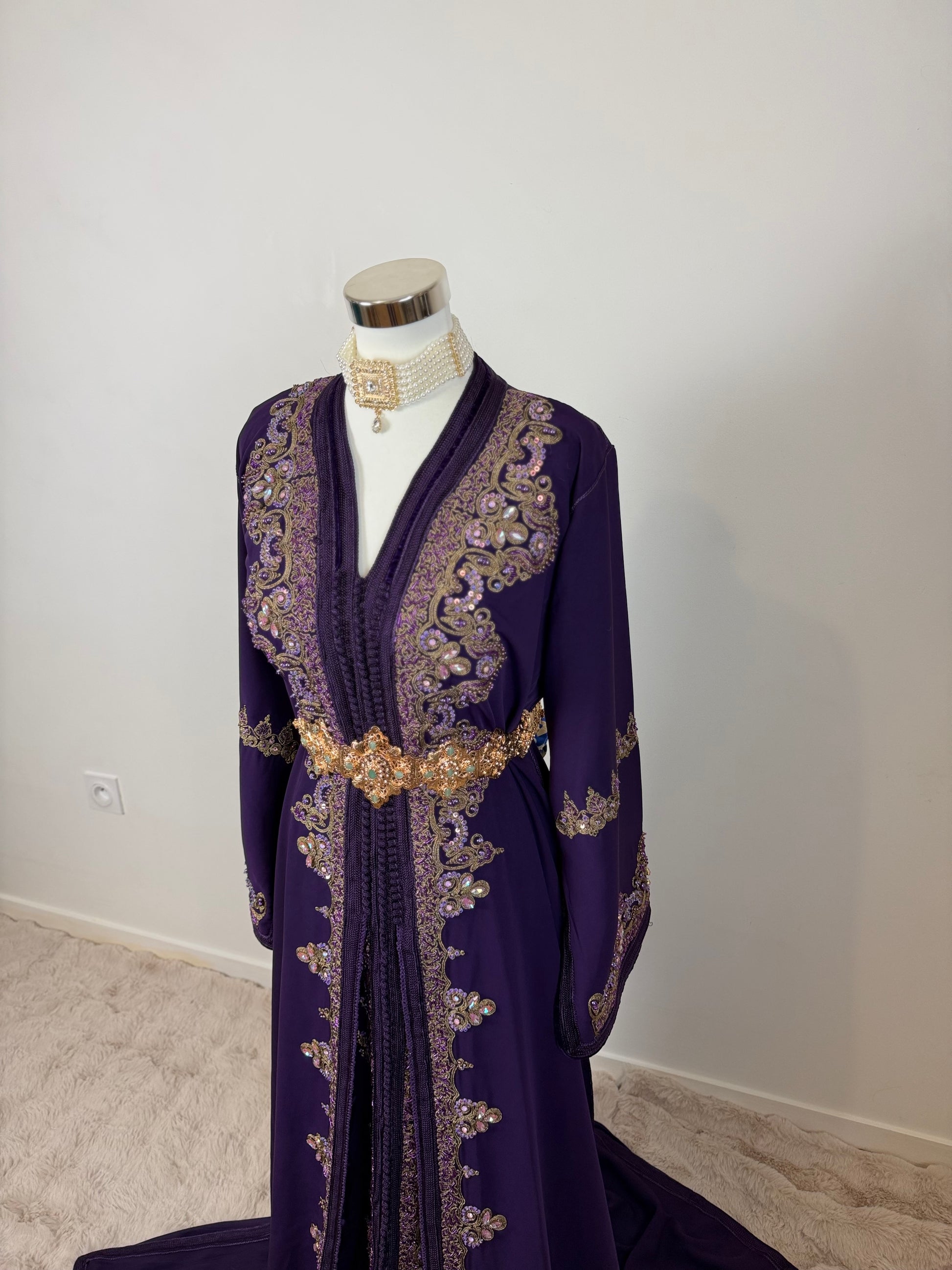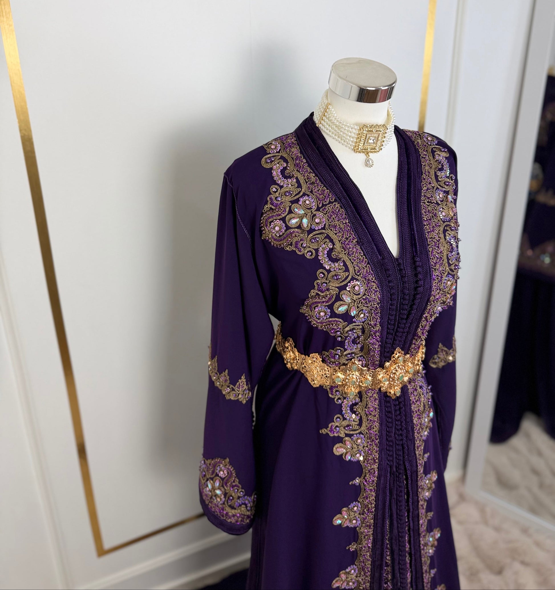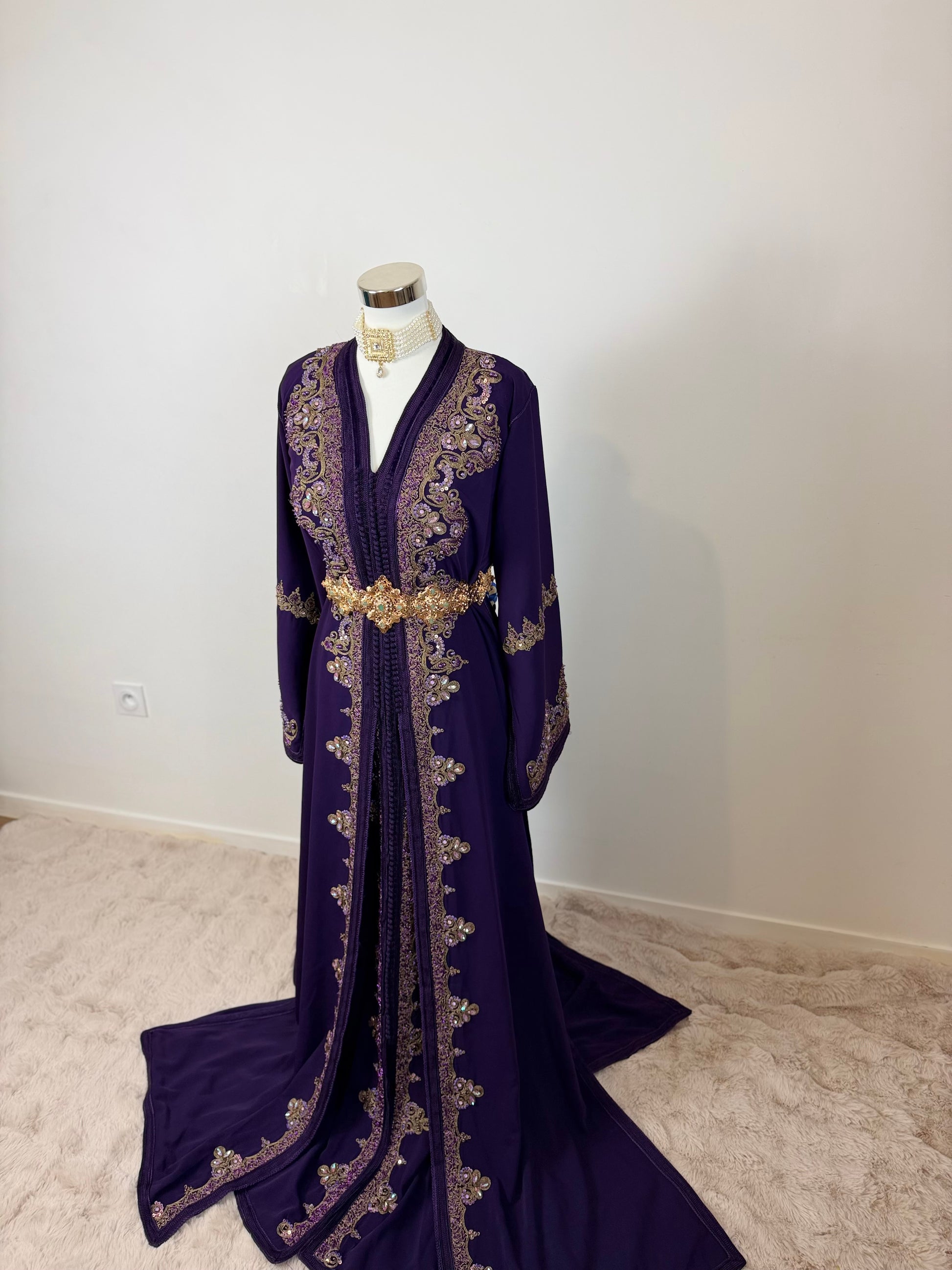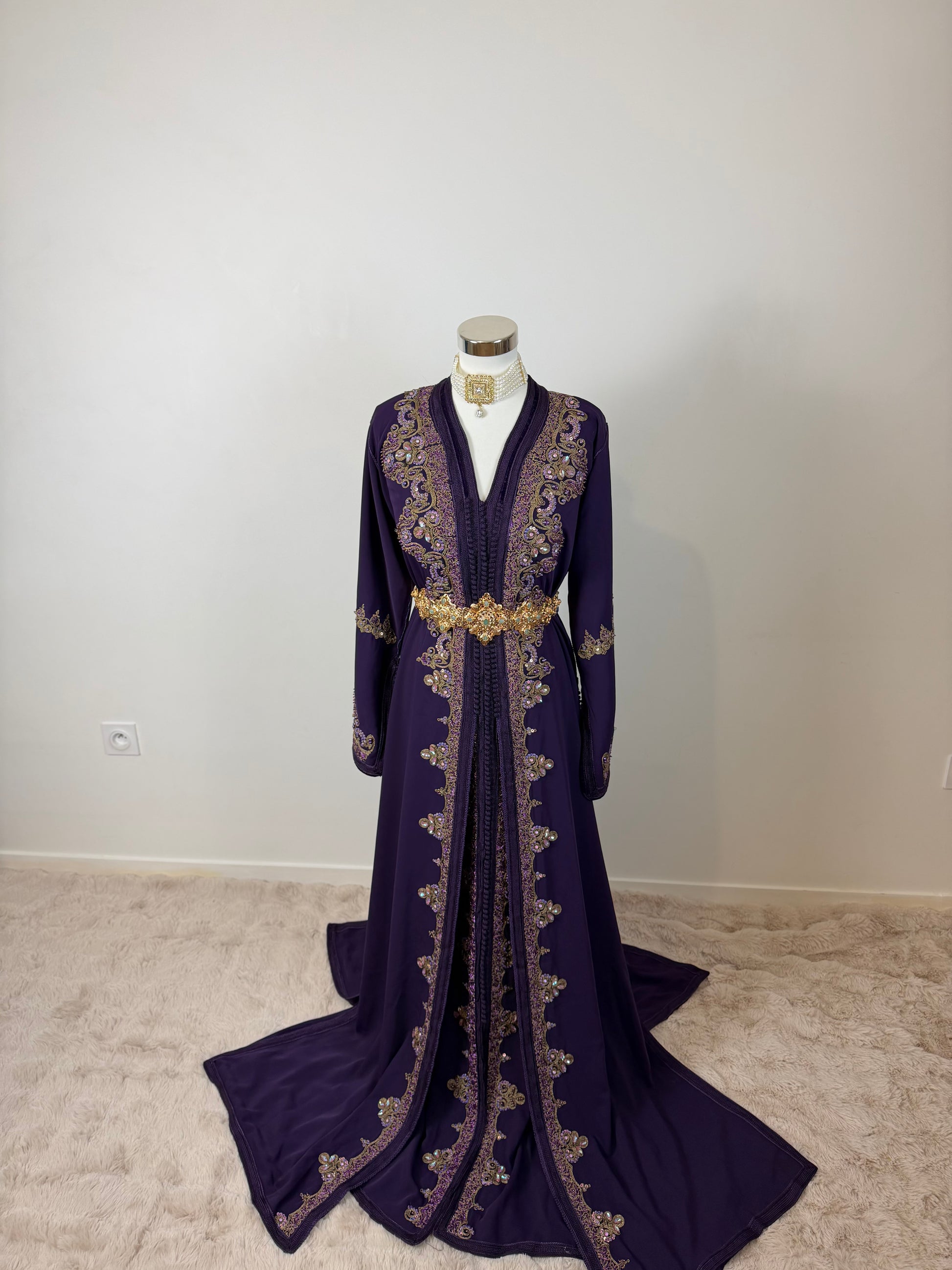 this caftan combines the charm of Moroccan craftsmanship with a contemporary touch,