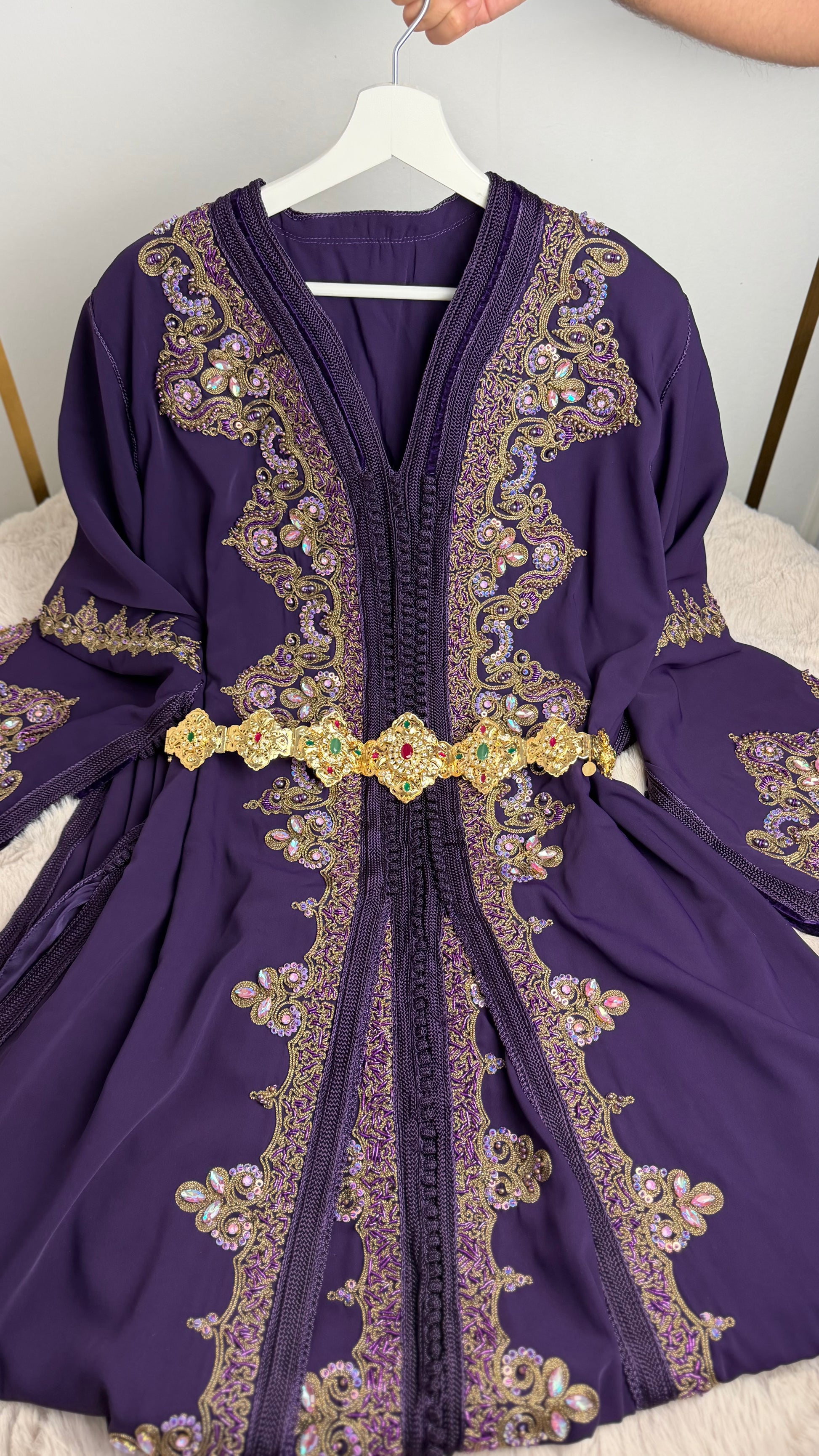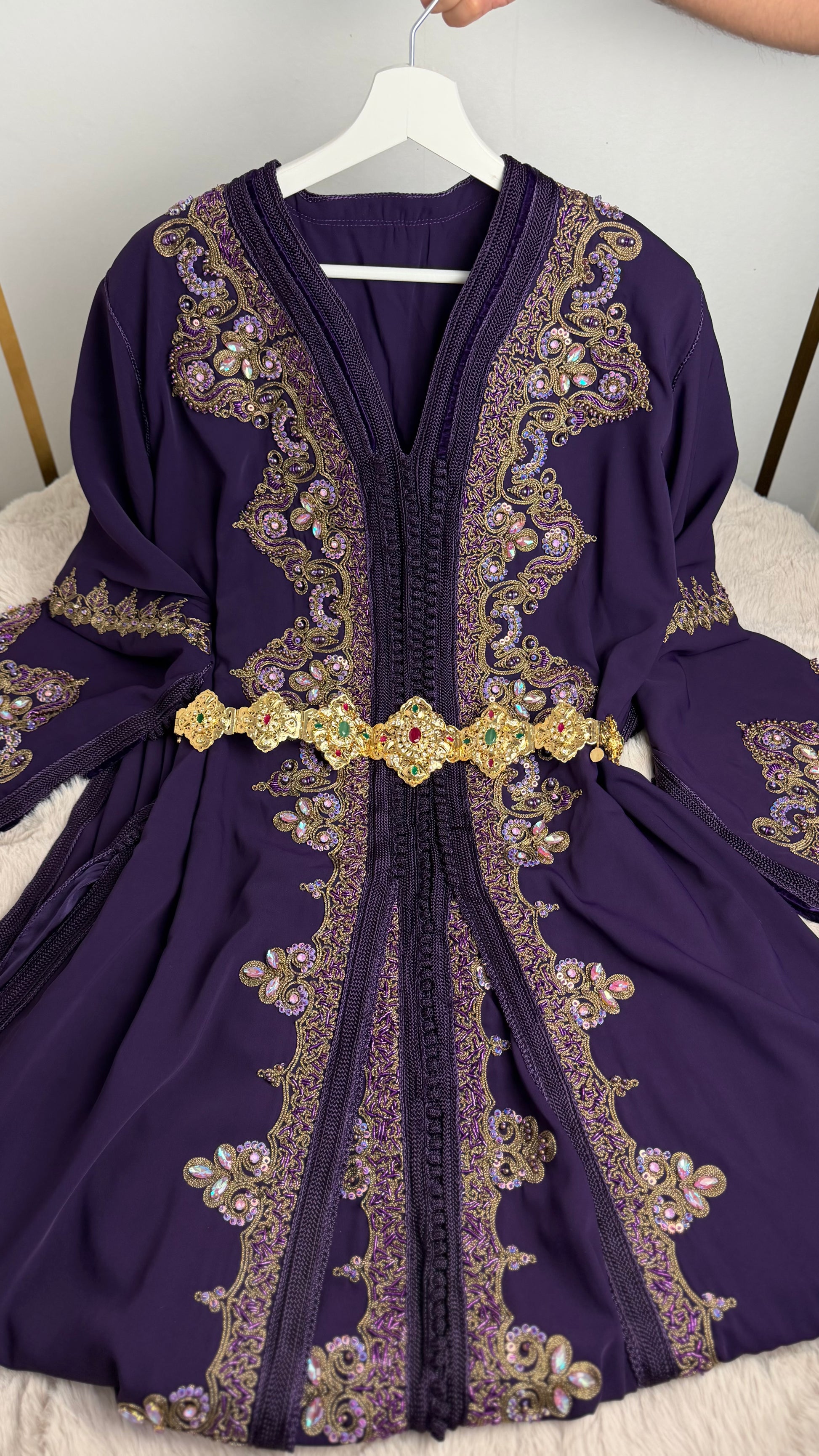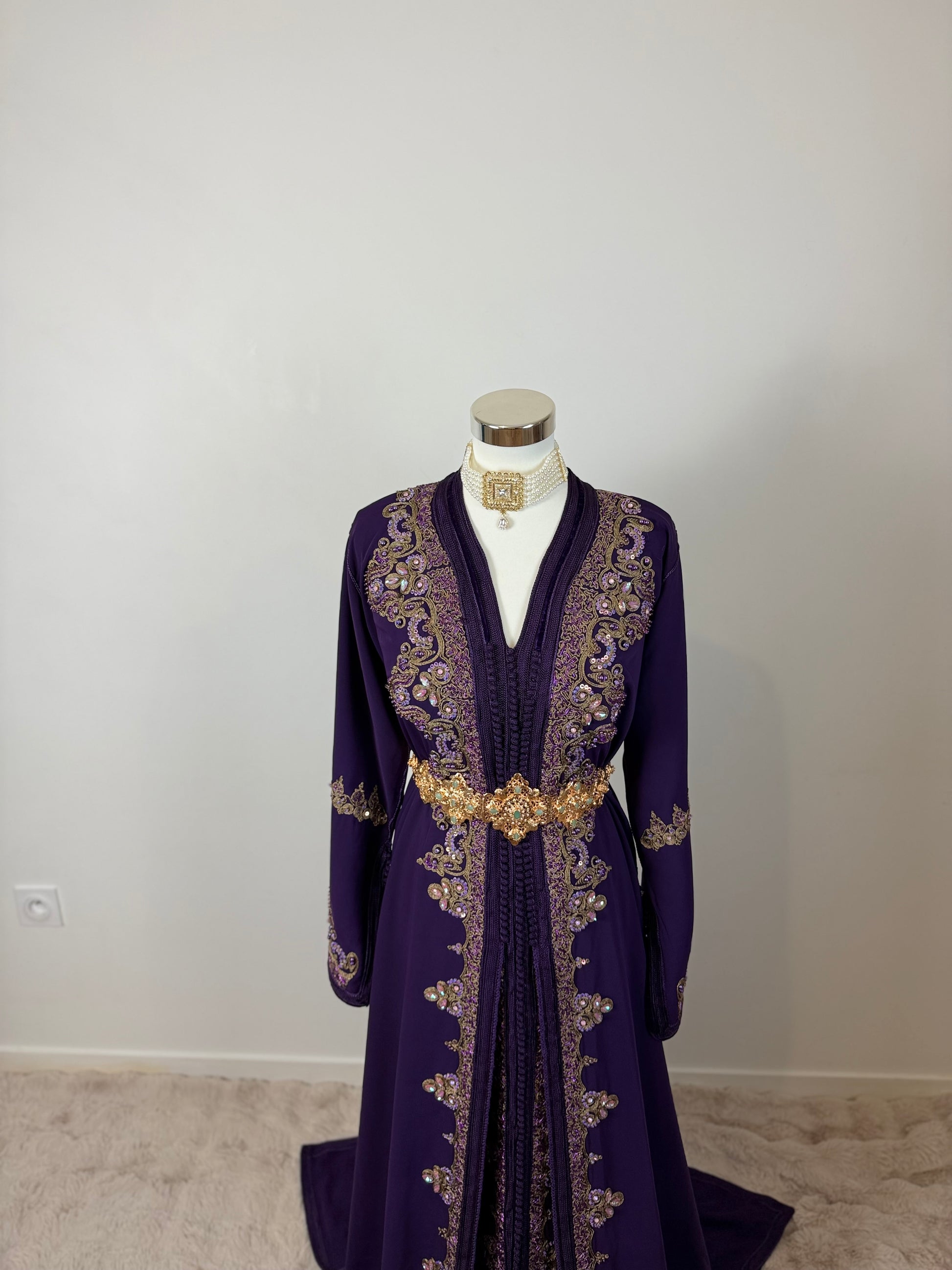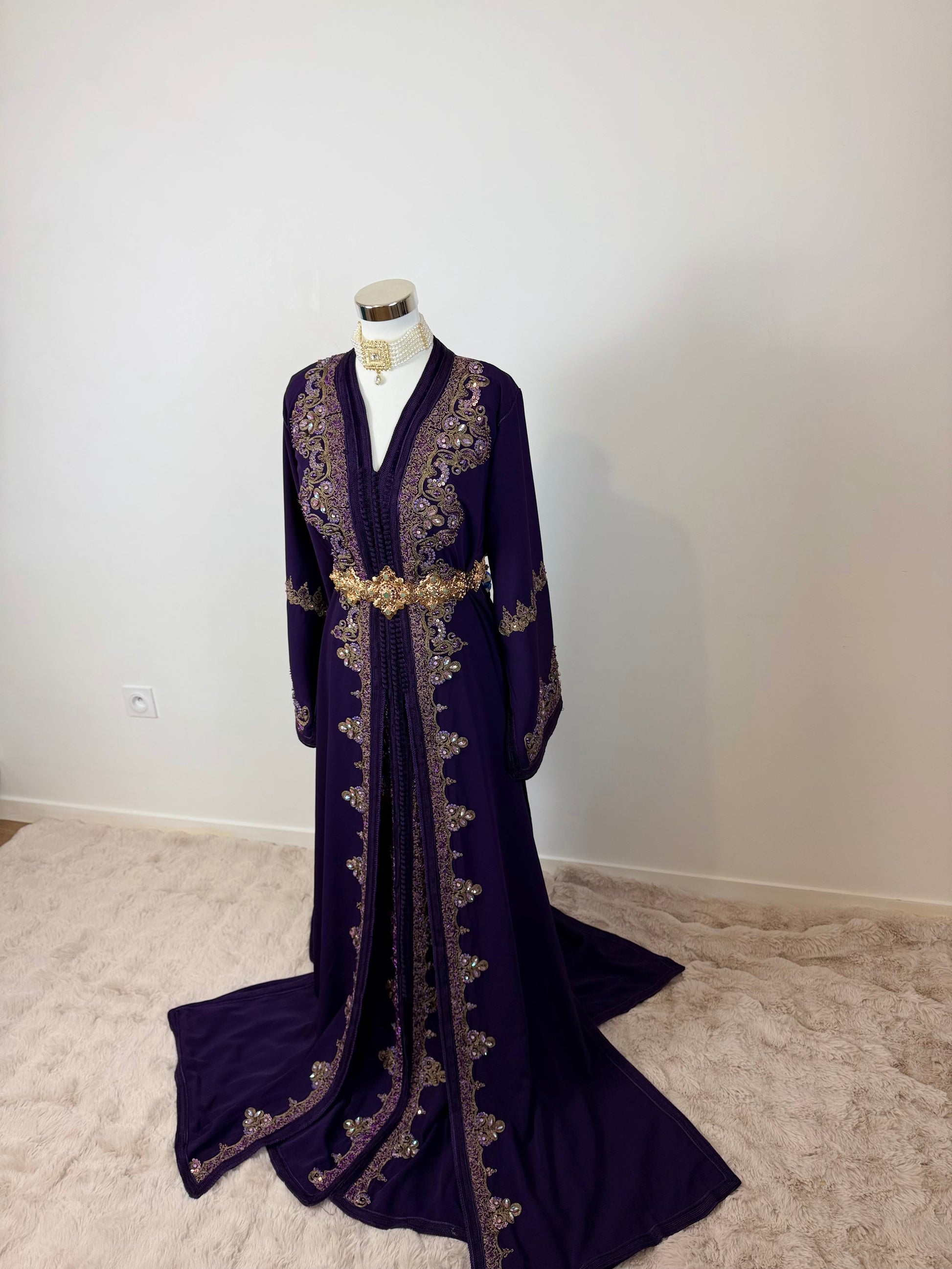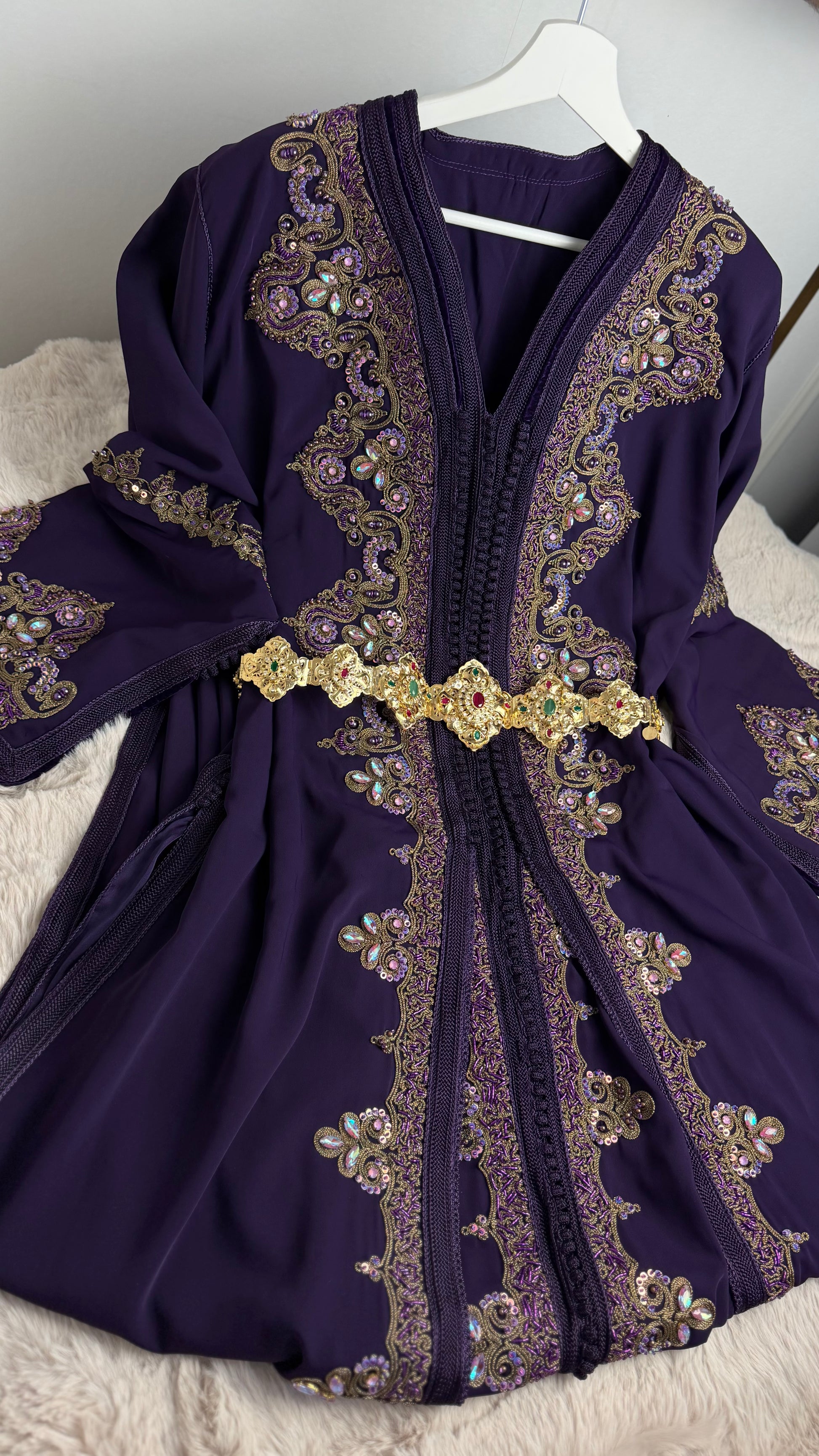 this caftan combines the charm of Moroccan craftsmanship with a contemporary touch,