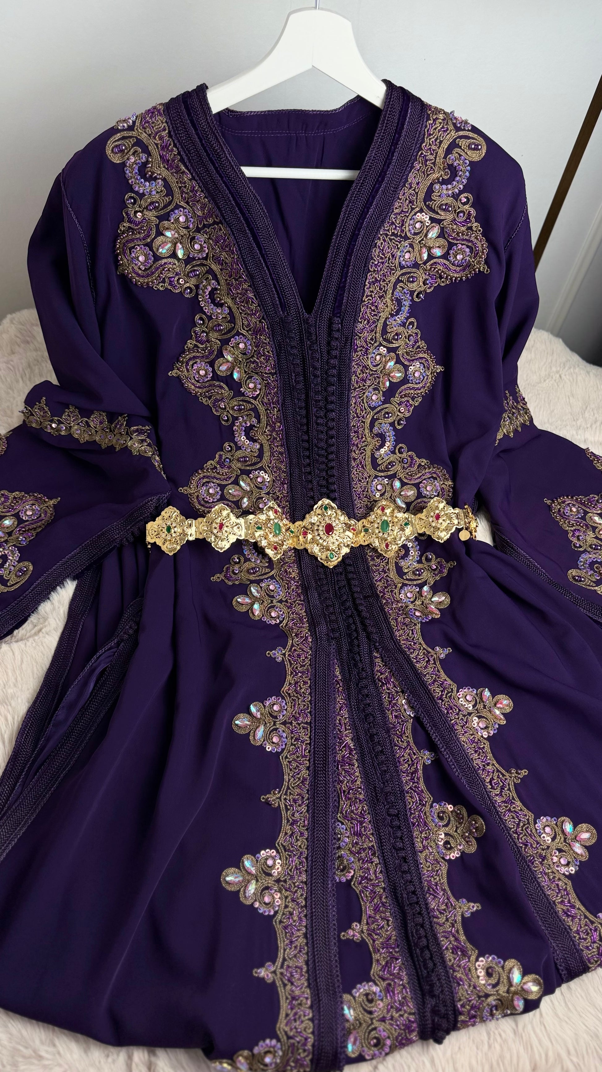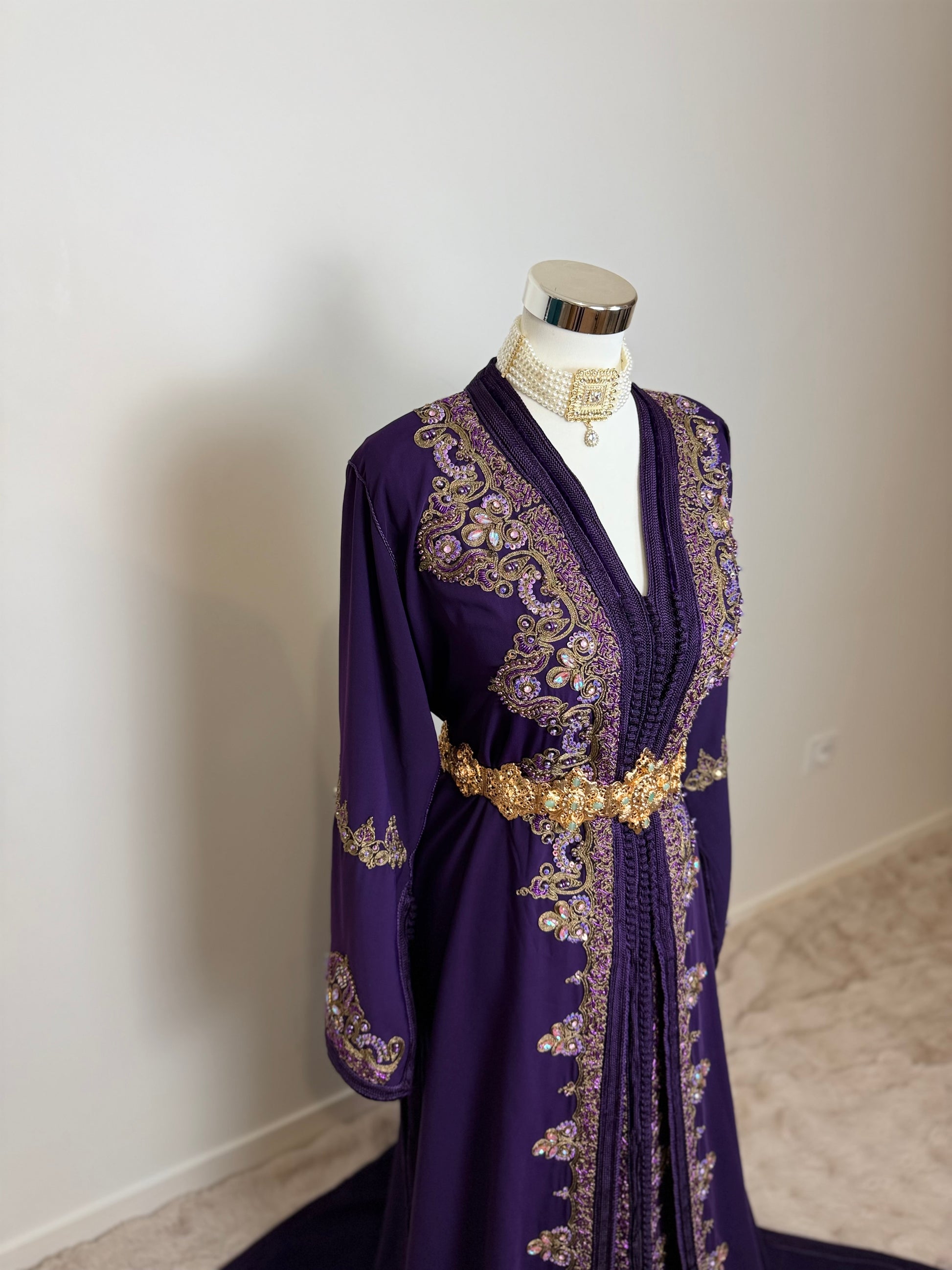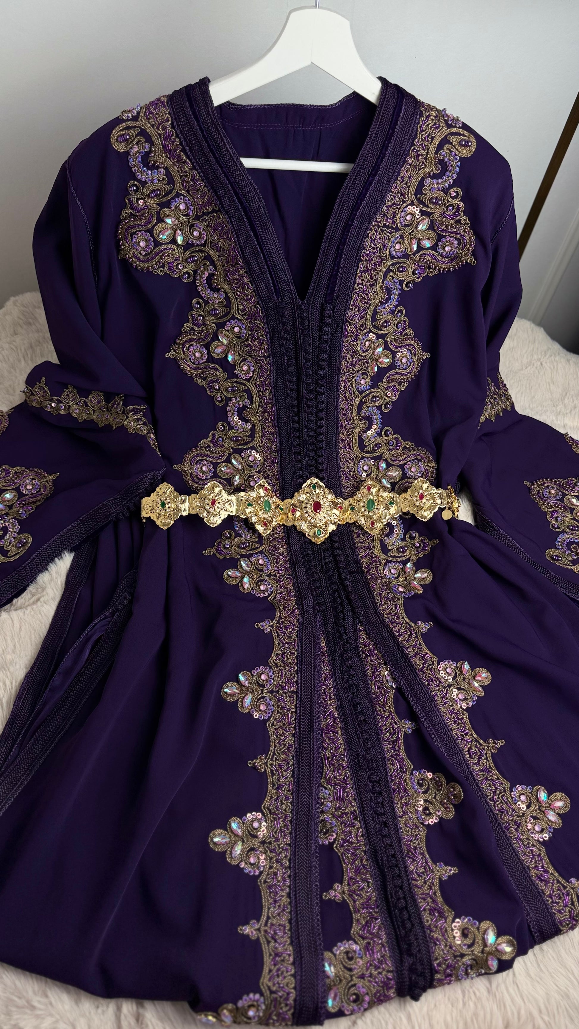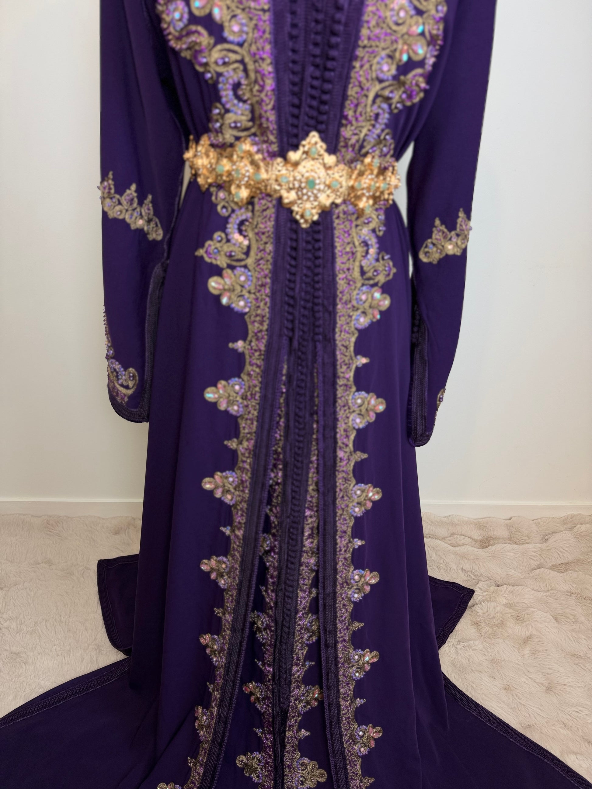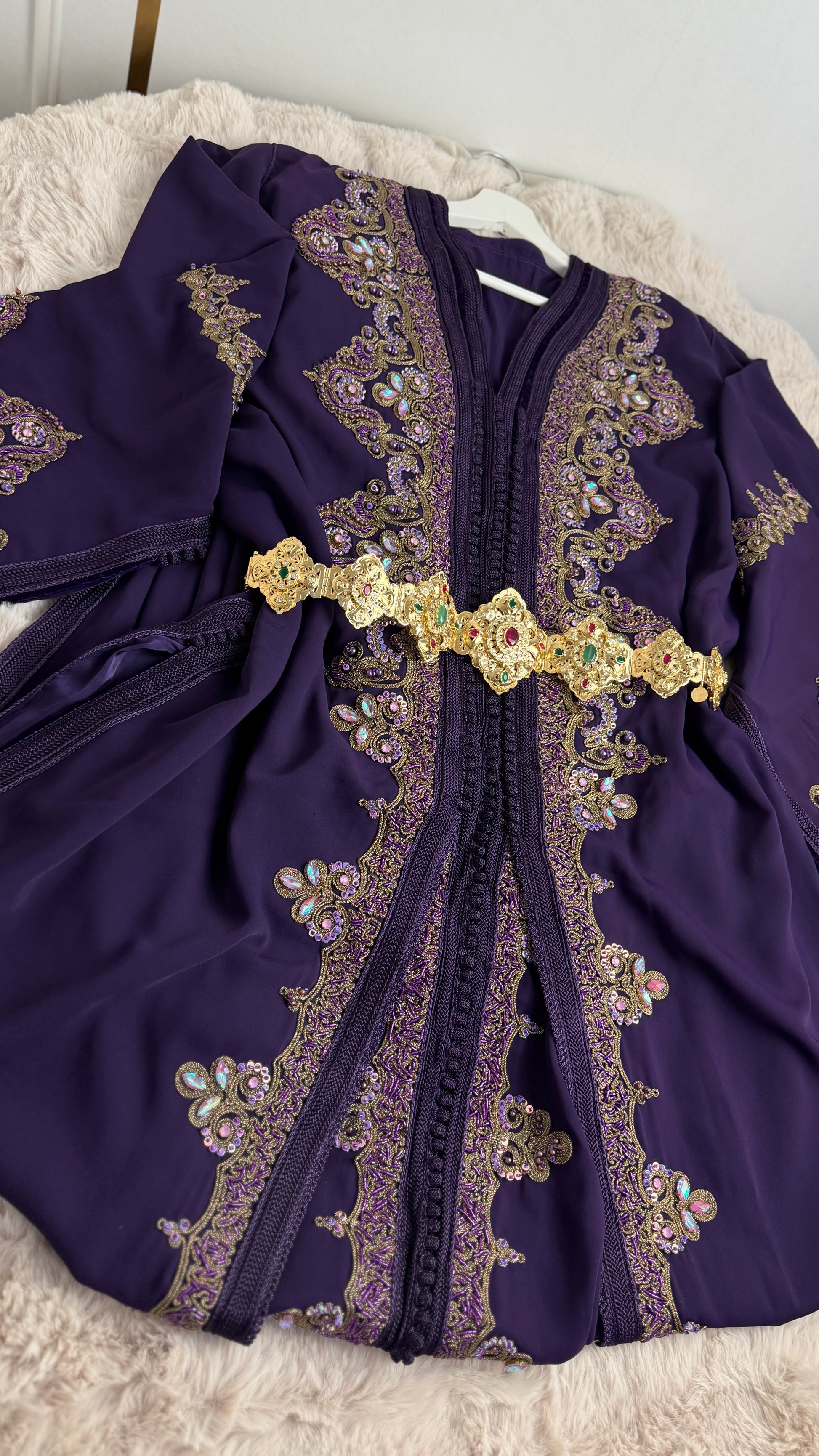 this caftan combines the charm of Moroccan craftsmanship with a contemporary touch,
