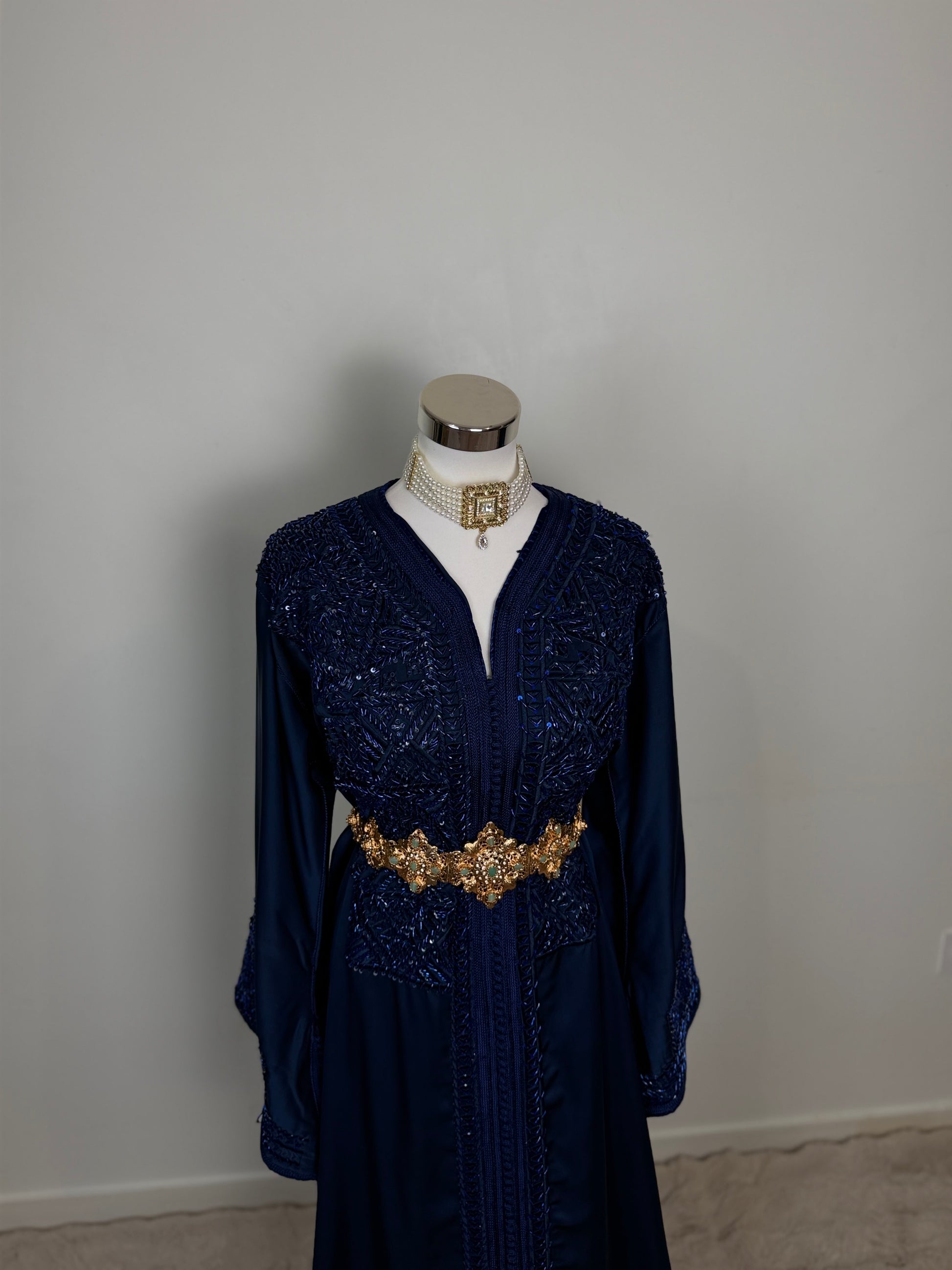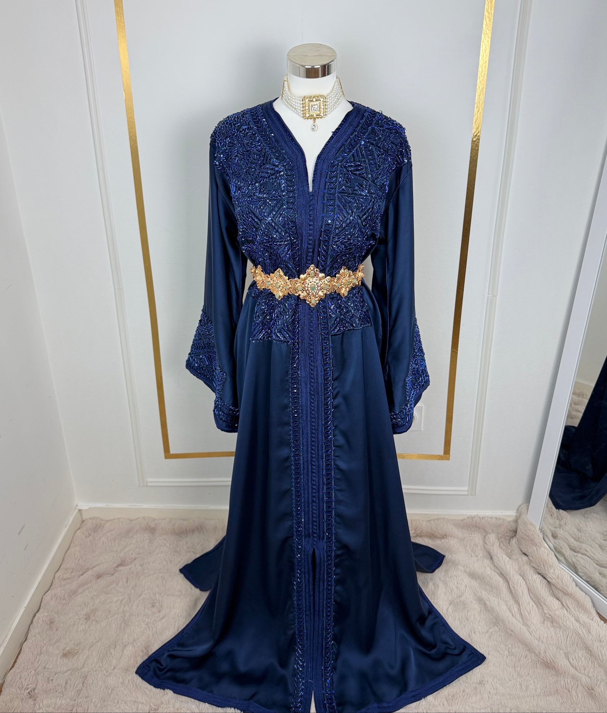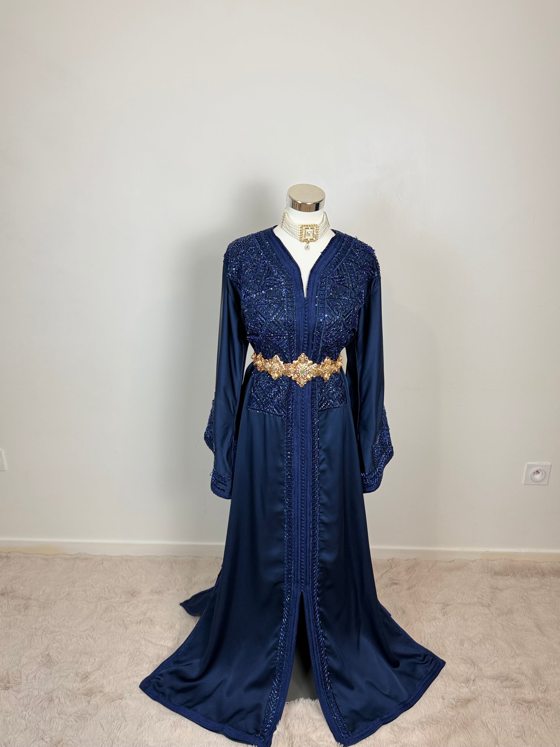 this caftan combines the charm of Moroccan craftsmanship with a contemporary touch,