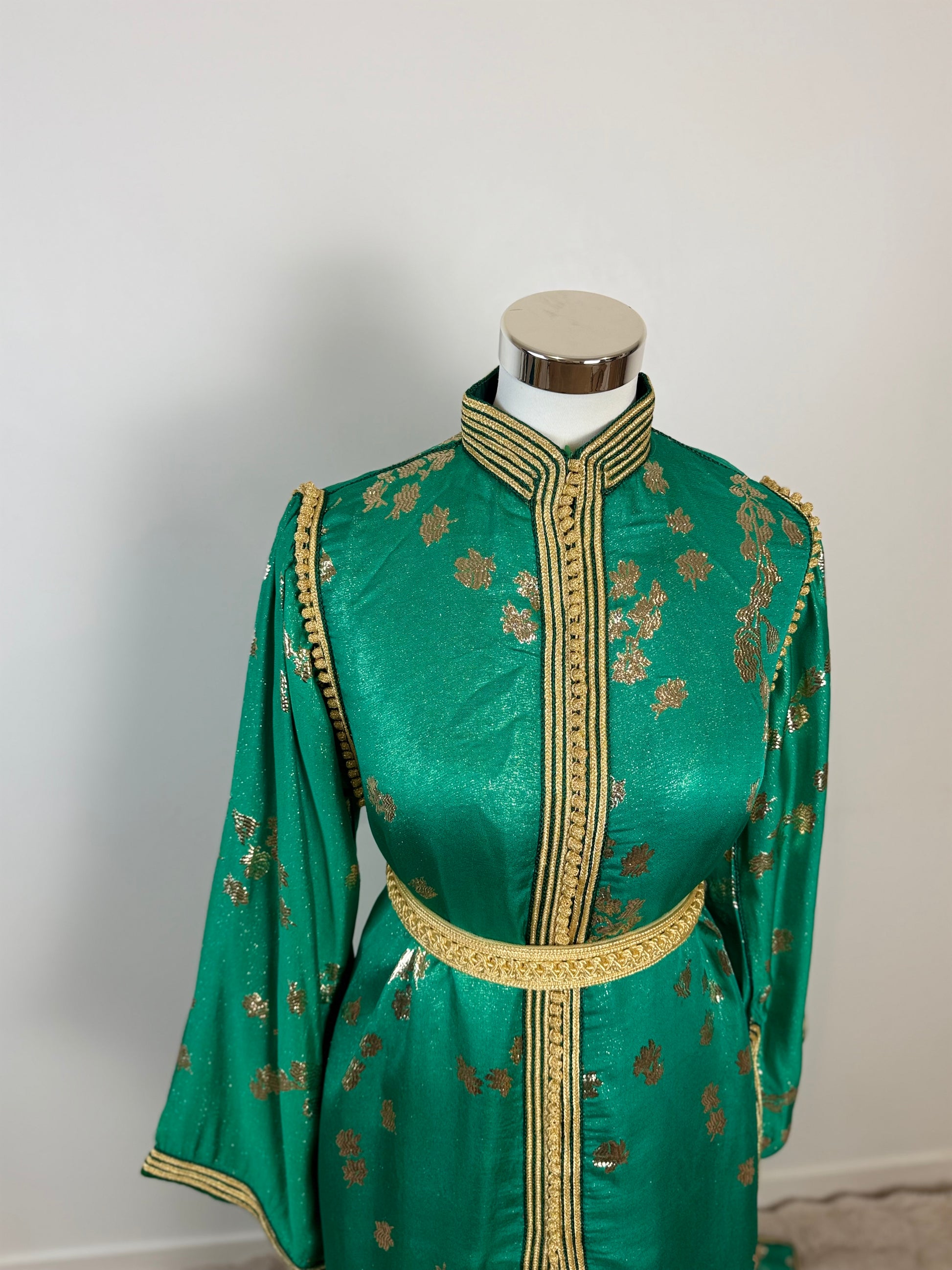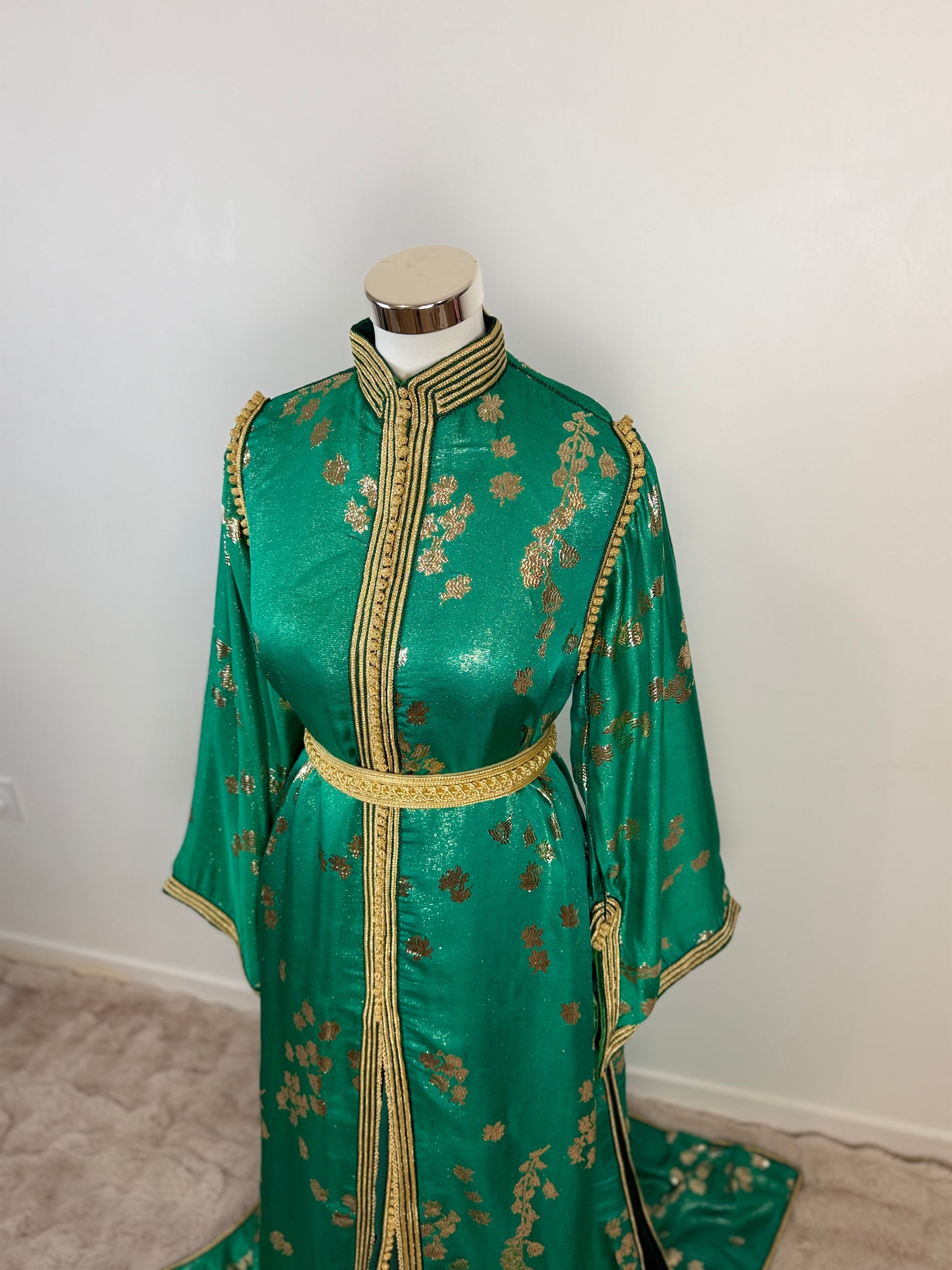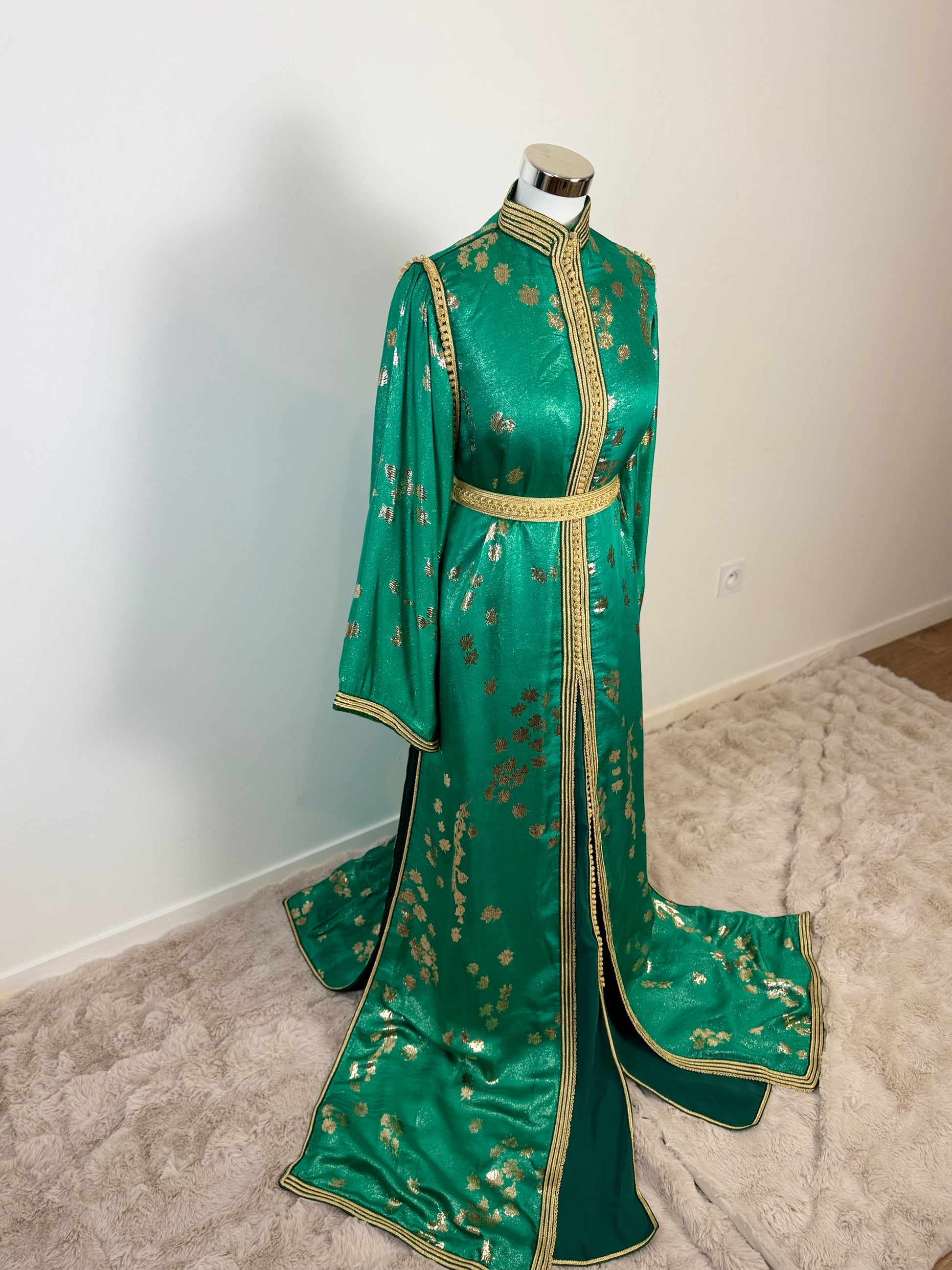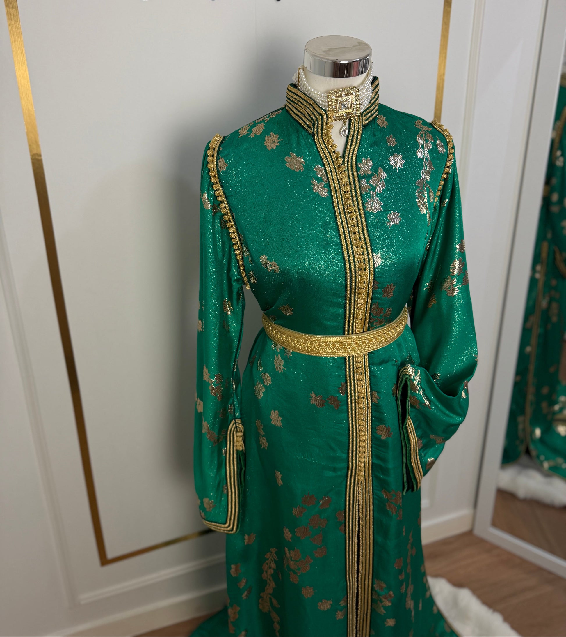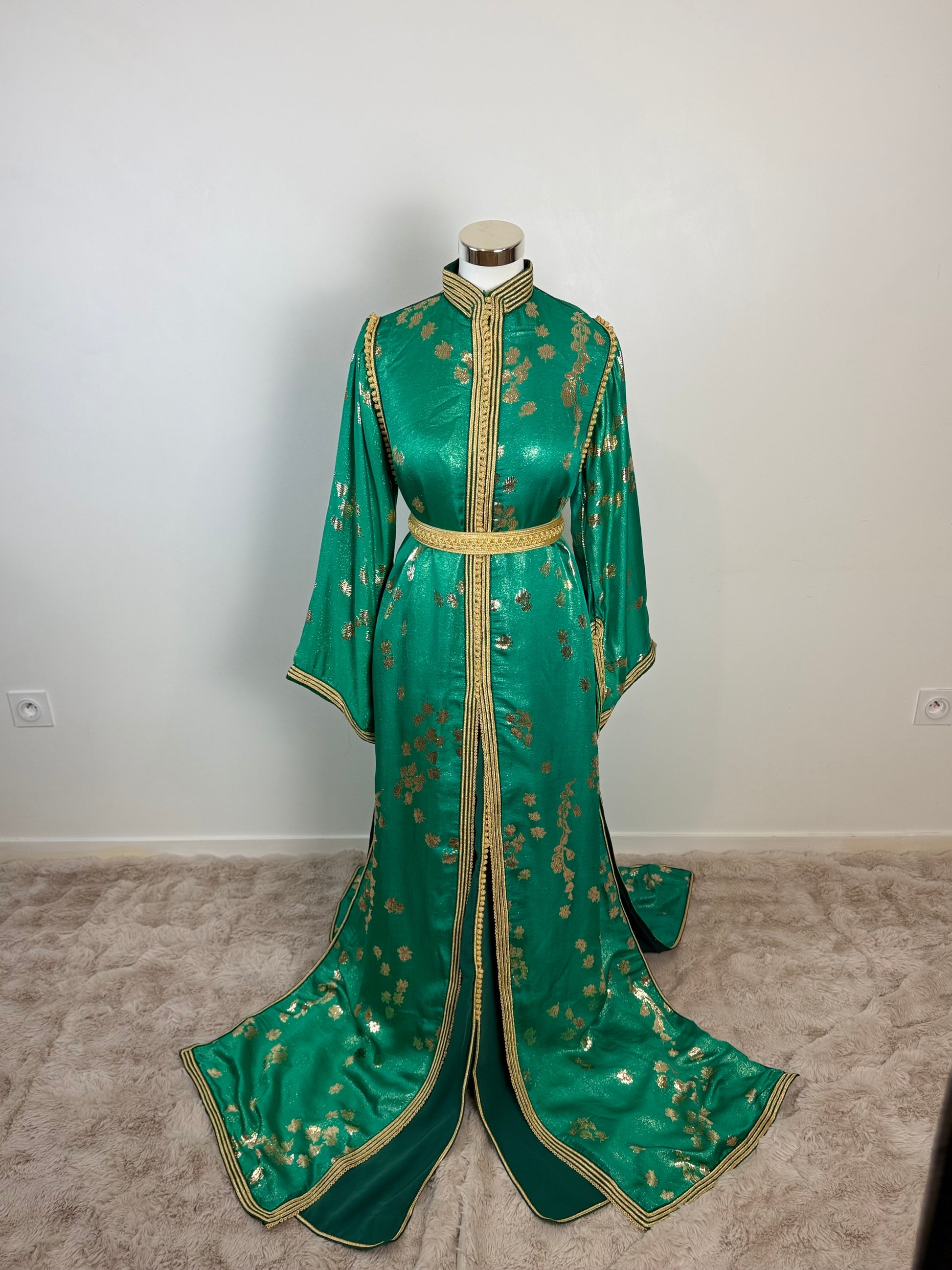 this caftan combines the charm of Moroccan craftsmanship with a contemporary touch,