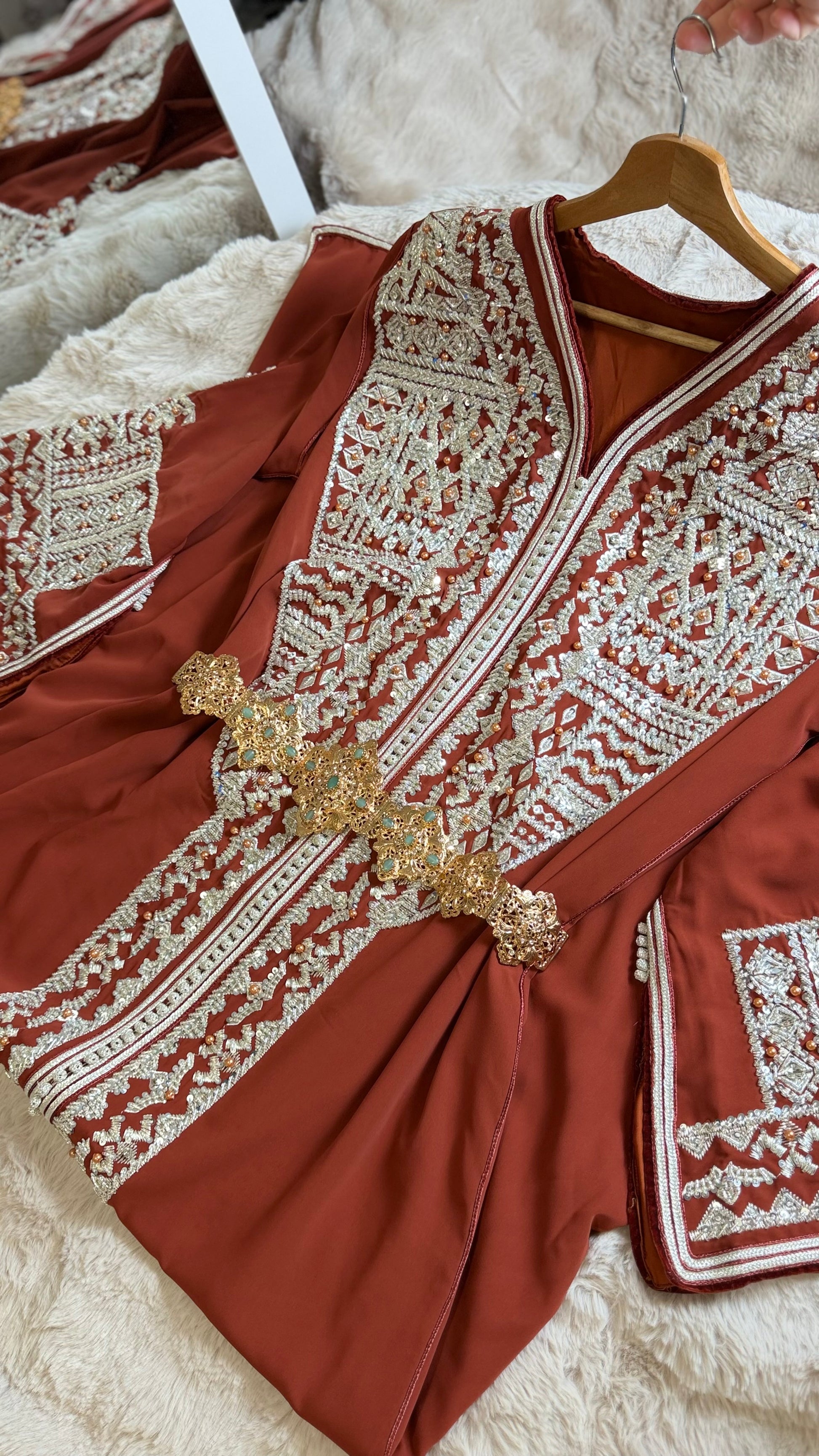 this caftan combines the charm of Moroccan craftsmanship with a contemporary touch,